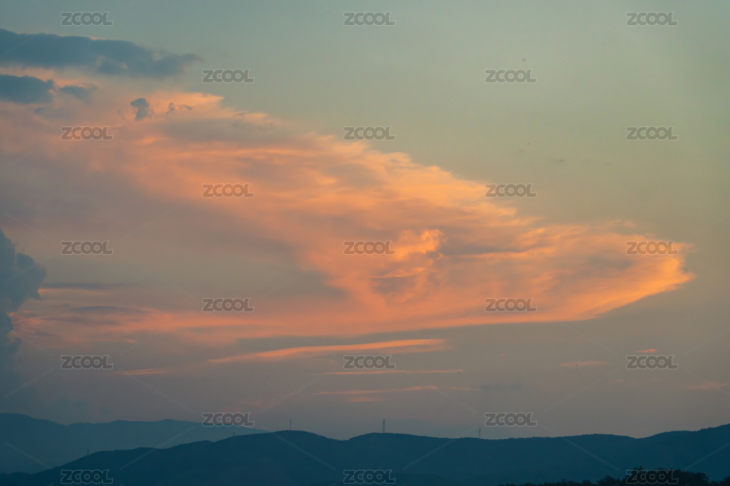 黄昏,云彩,天空,远山,暮色,霞光,自然景观,户外,日落,山峦