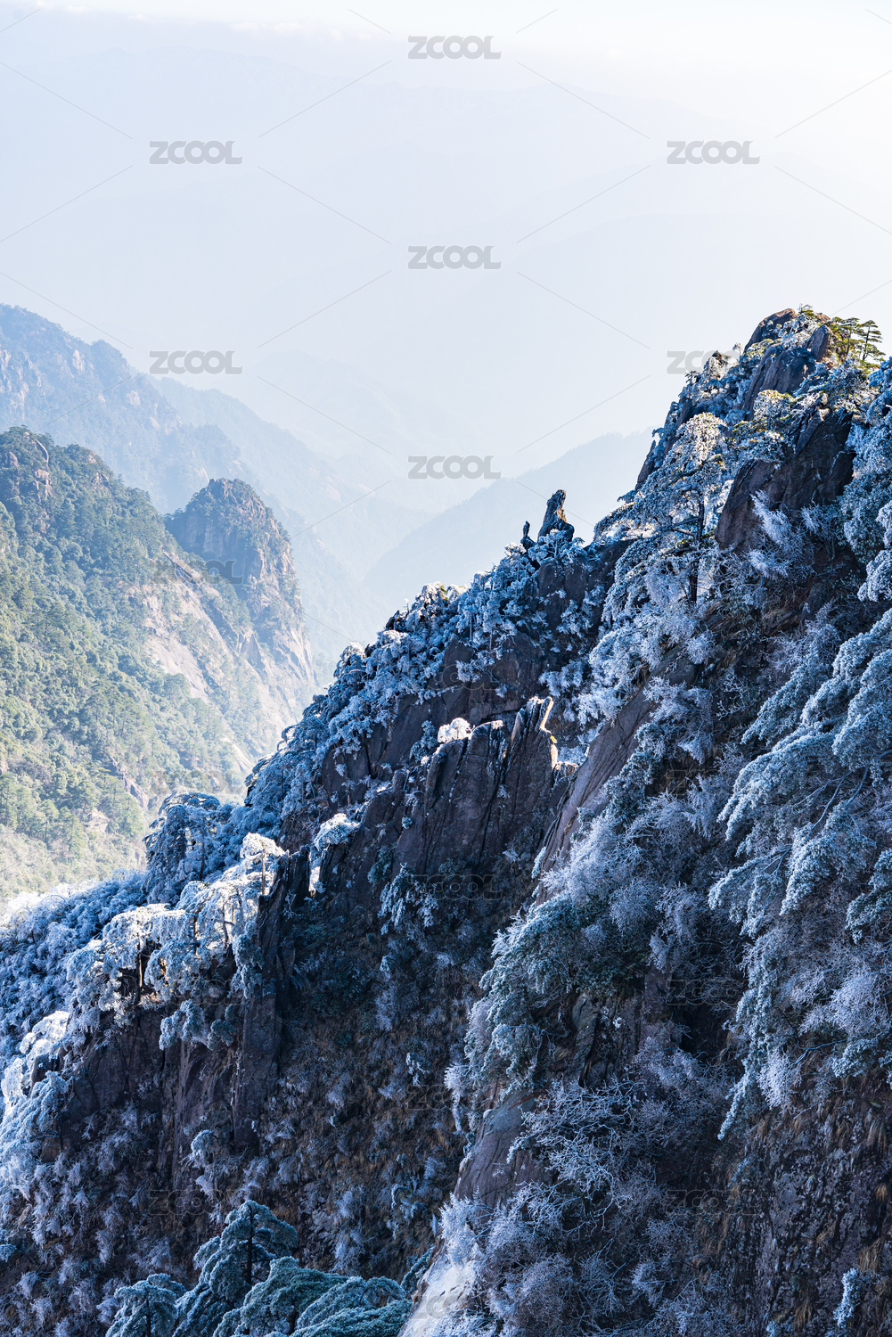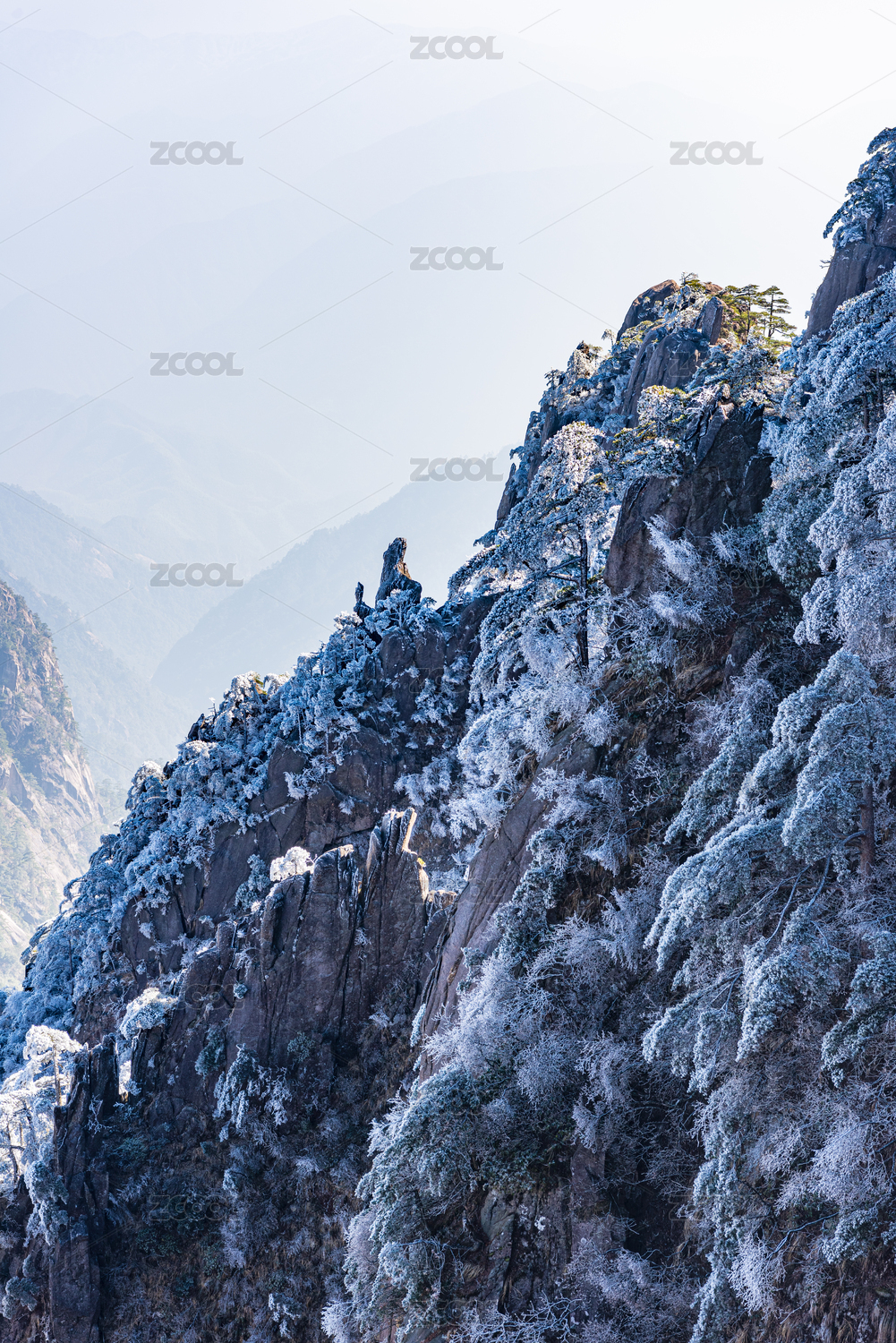 安徽省黄山市黄山风景区冬季雾凇雪景