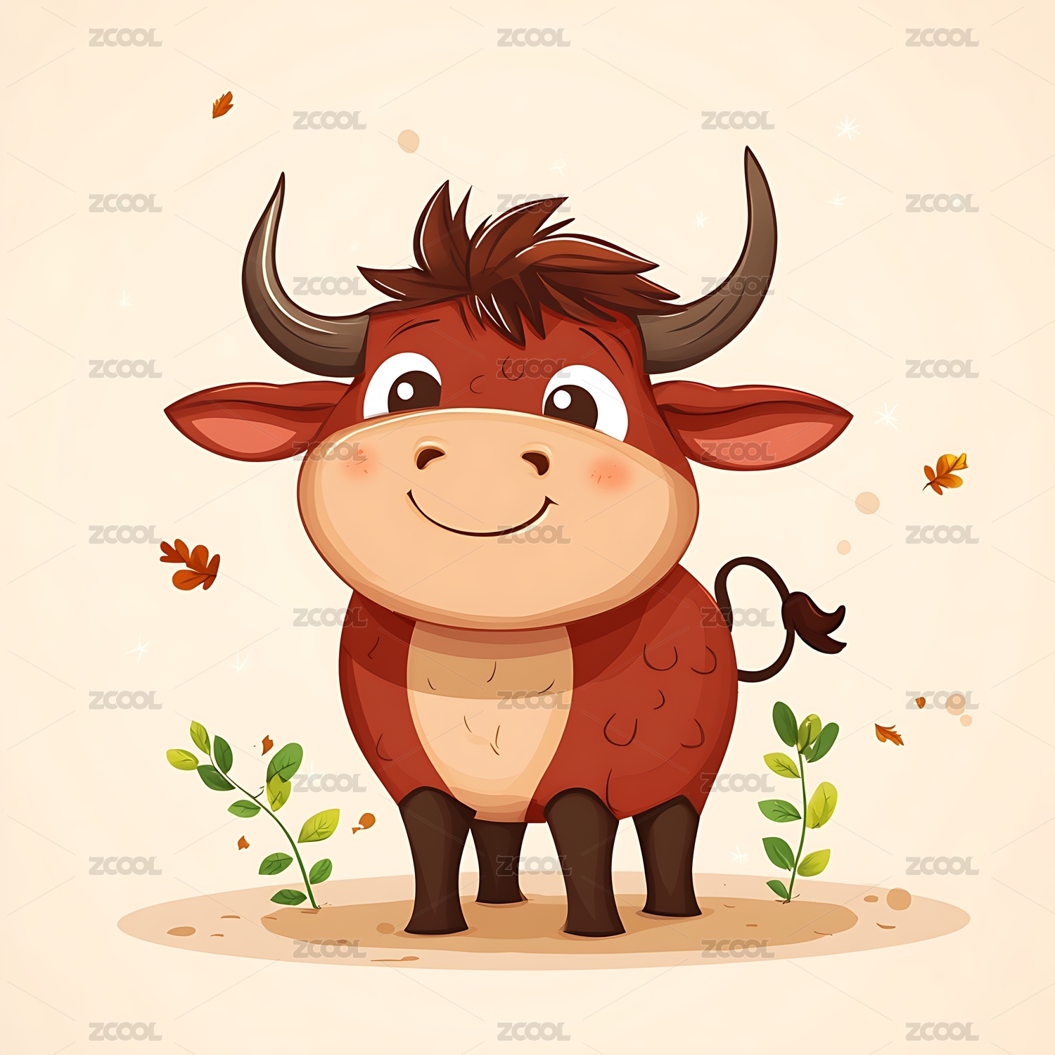 卡通小牛萌趣形象场景