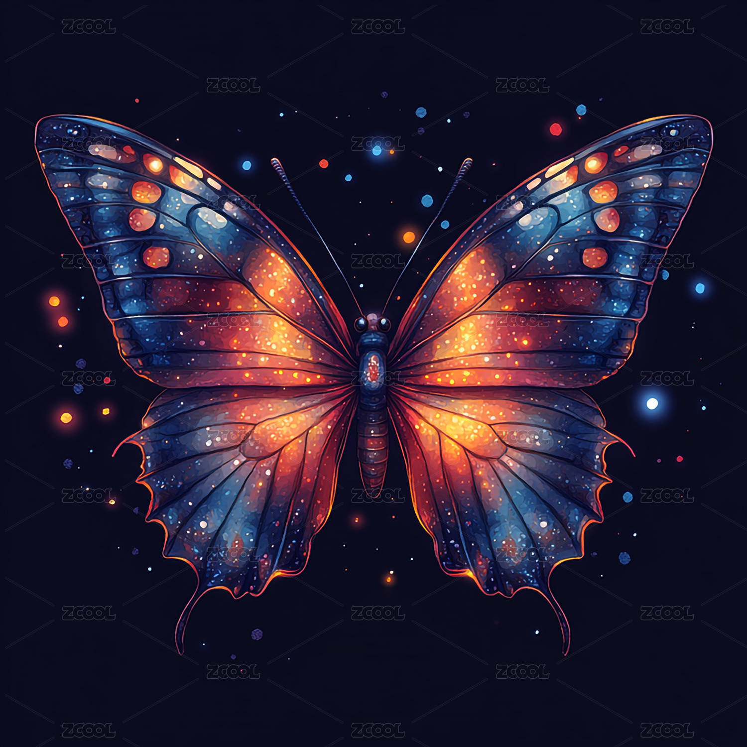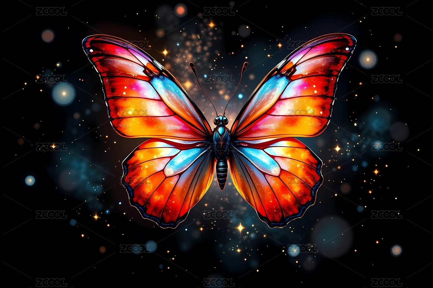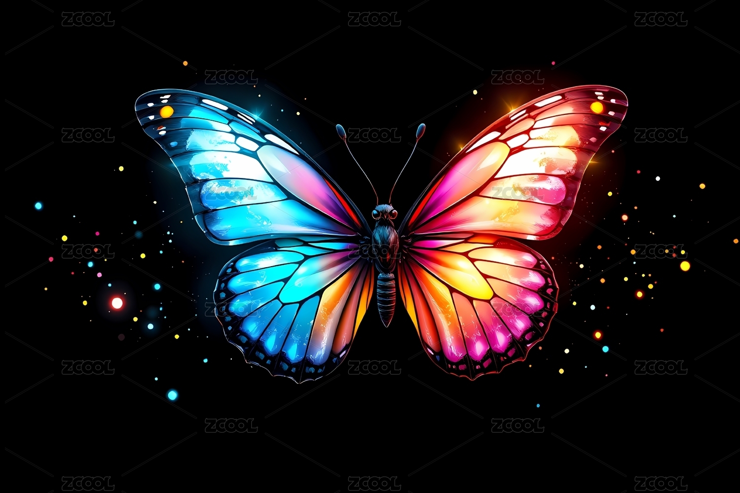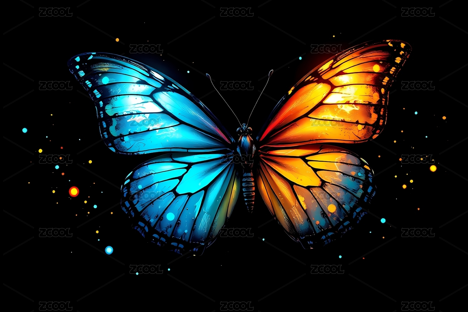 黑色背景上的绚丽蓝色梦幻蝴蝶