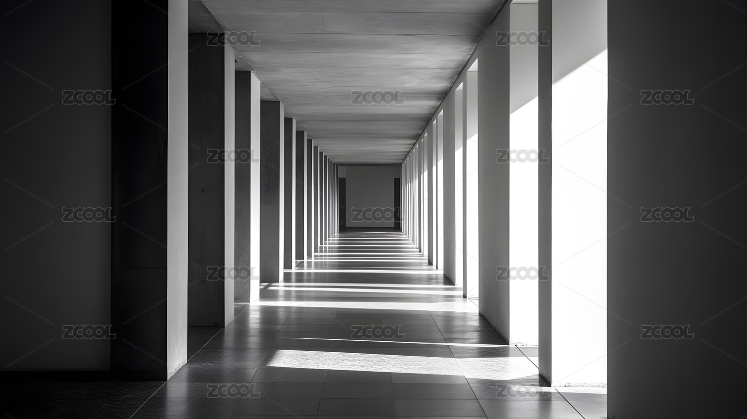 光影交错的现代建筑走廊