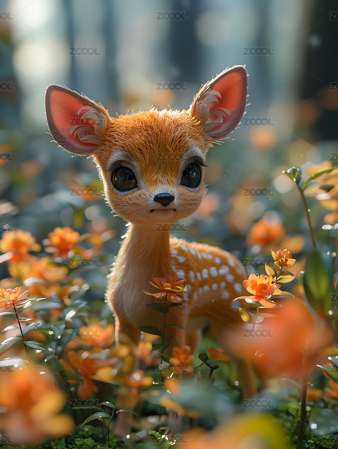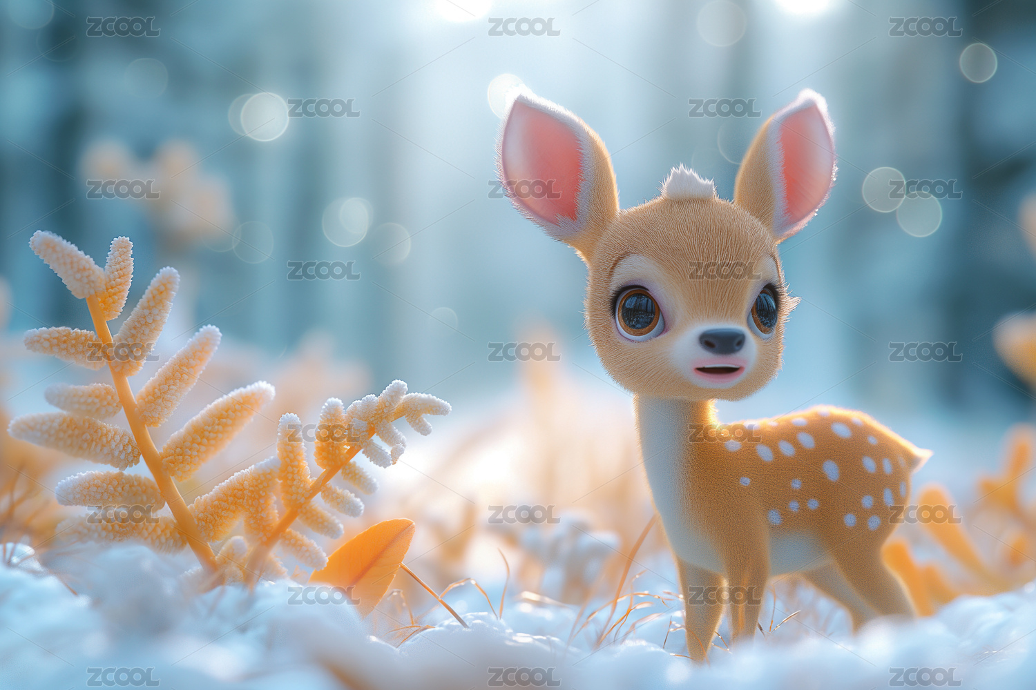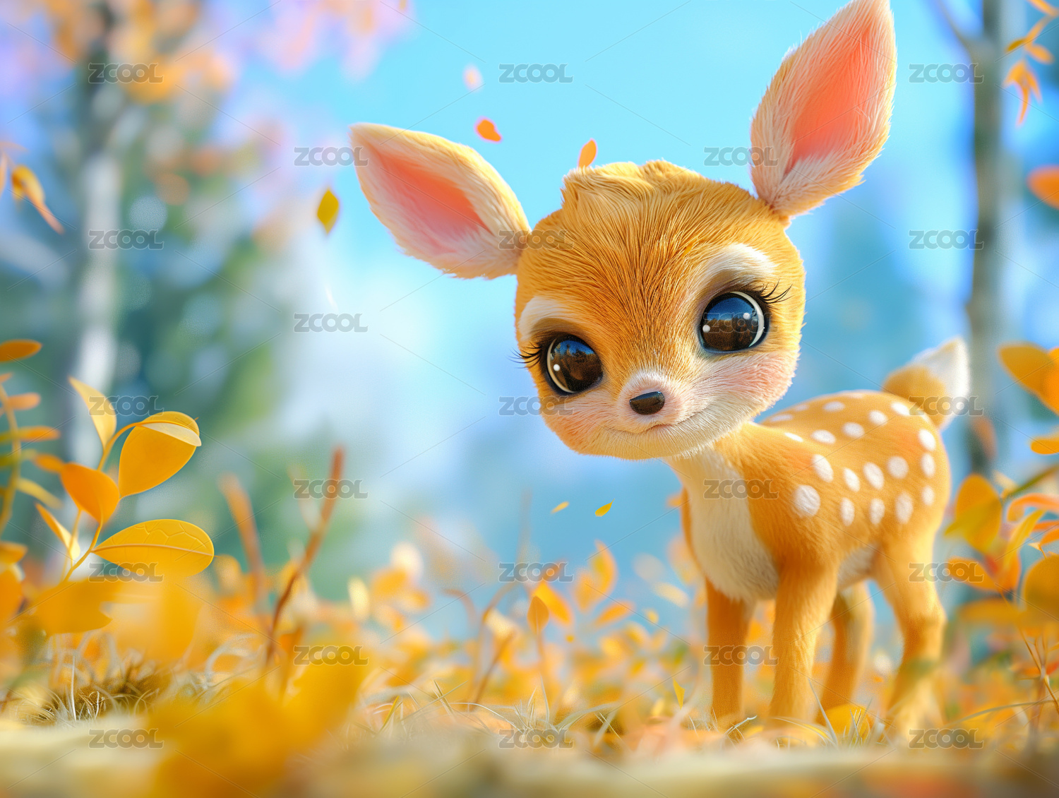 梅花鹿可爱唯美野生动物3D卡通插画壁纸