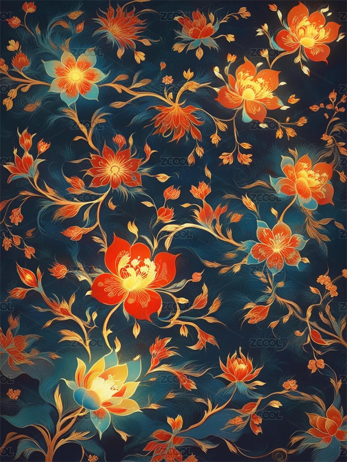 花朵,云朵,绘画,艺术,中国风,植物,背景,设计,花卉,图案