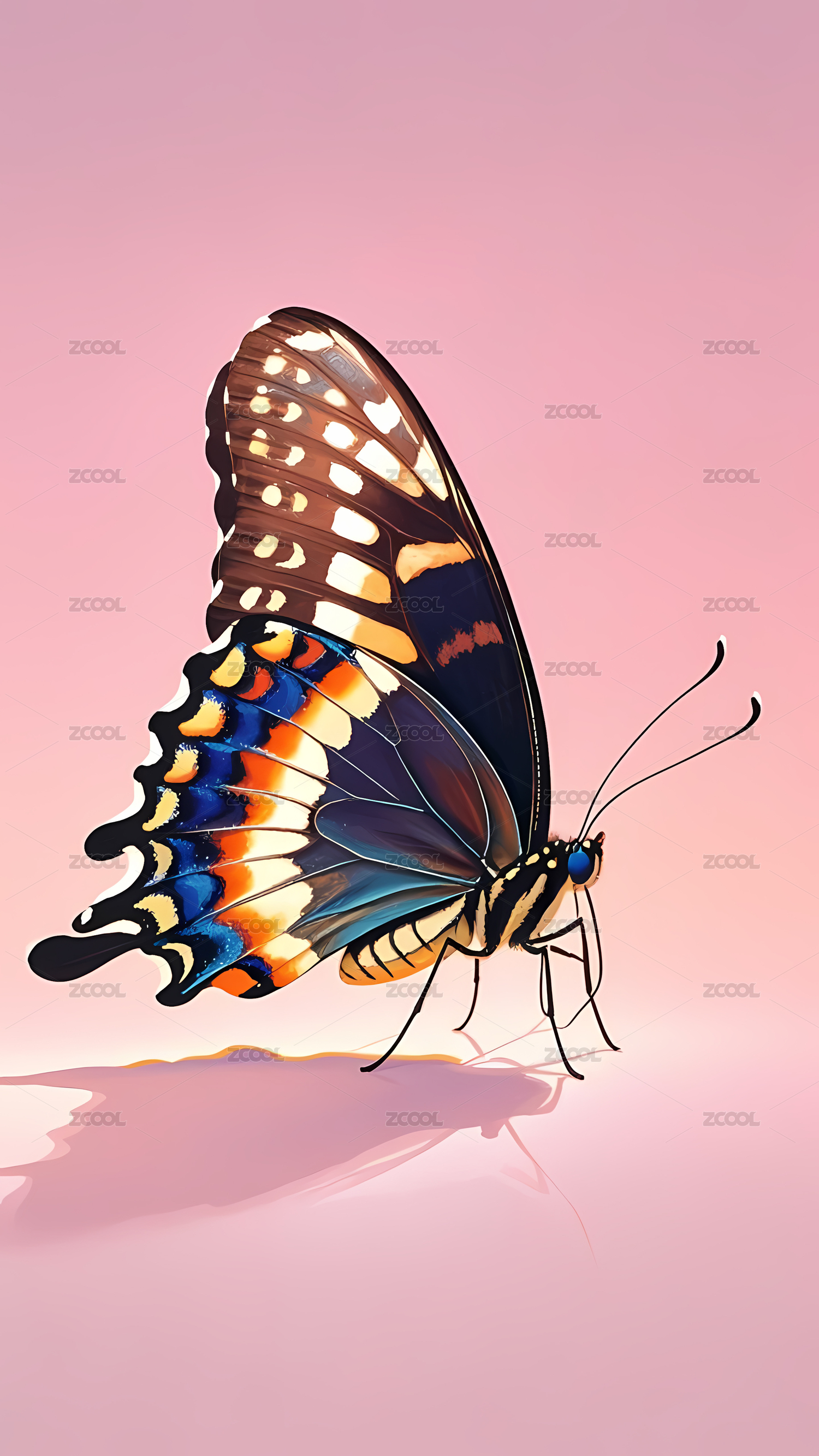 粉橙渐变蝴蝶与细腻纹理的简洁艺术画面
