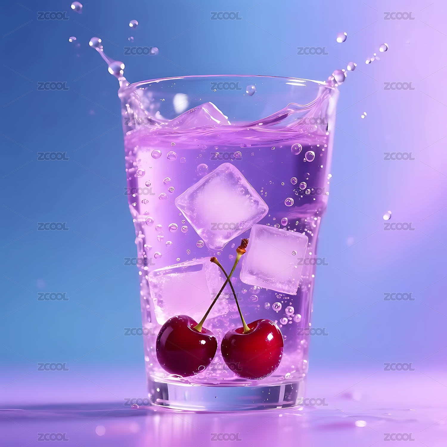 冰块, 牛奶, 草莓, 水花, 饮料杯。