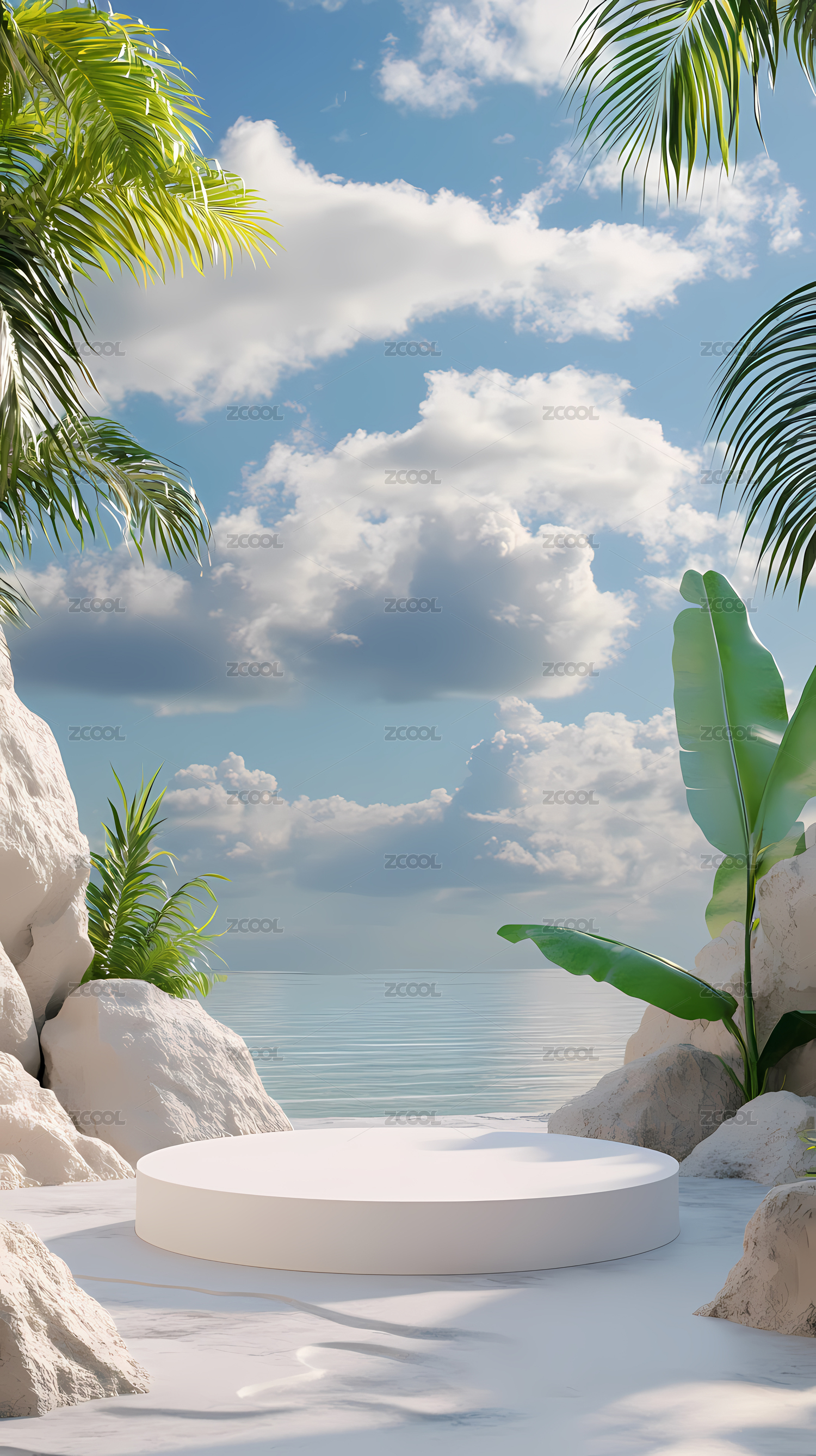 沙滩, 海水, 椰子树, 猴子, 圆柱体。