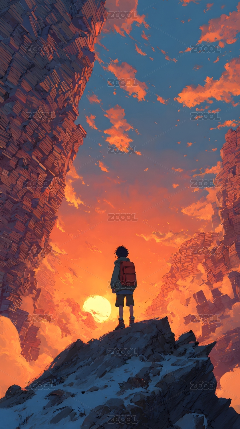 景色,夕阳,天空,远方,岩石,大地,夜色,氛围,神秘,悬崖