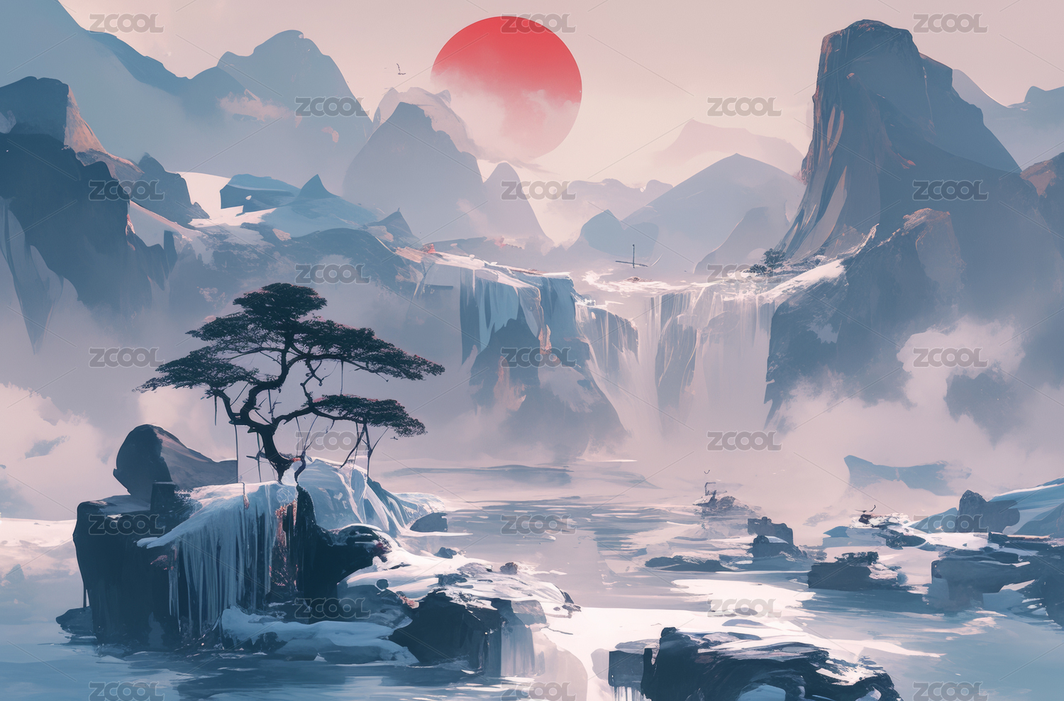 自然,松树,水面,倒影,艺术,意境,留白,风景,东方,静谧