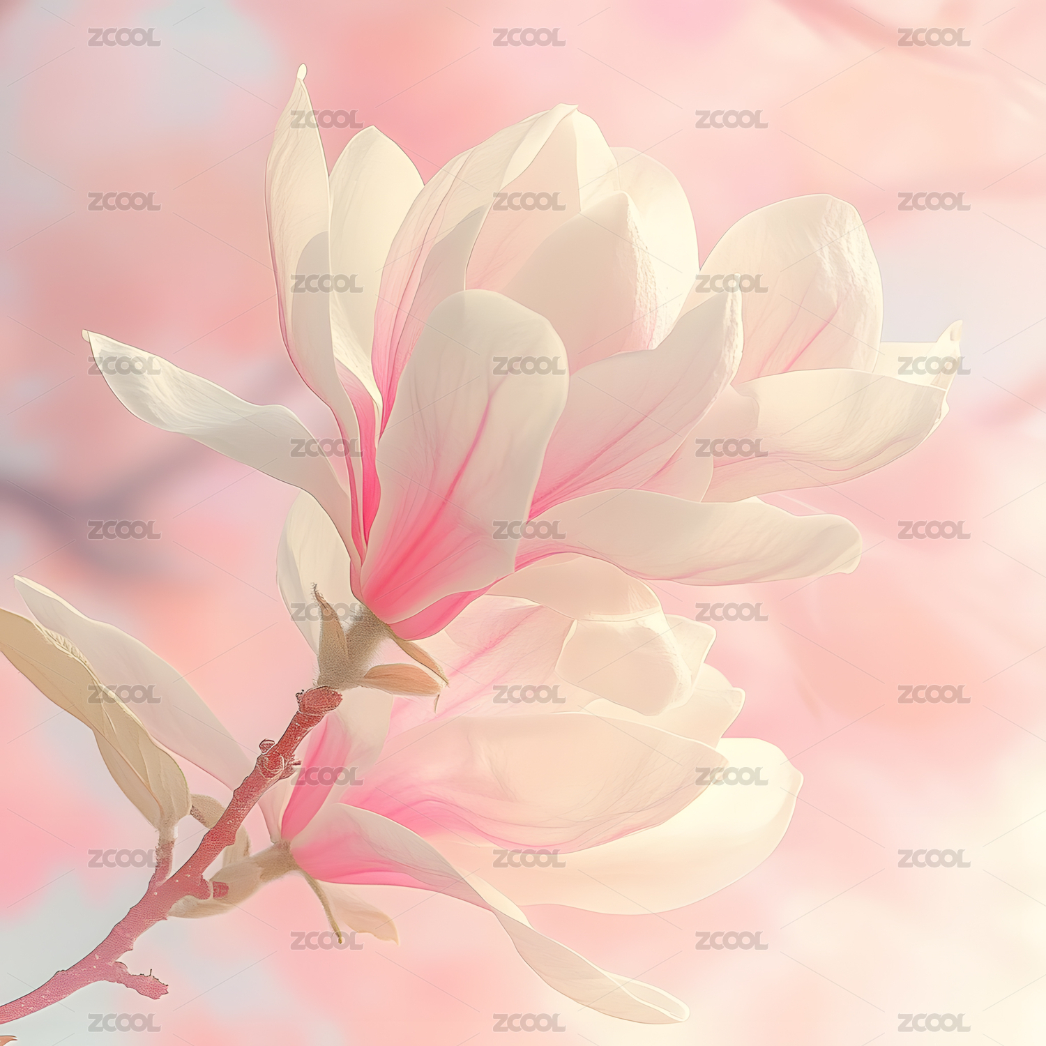 春季,晨光,玉兰花,插画,玉兰花开,盛开,春暖,花开,唯美,花枝