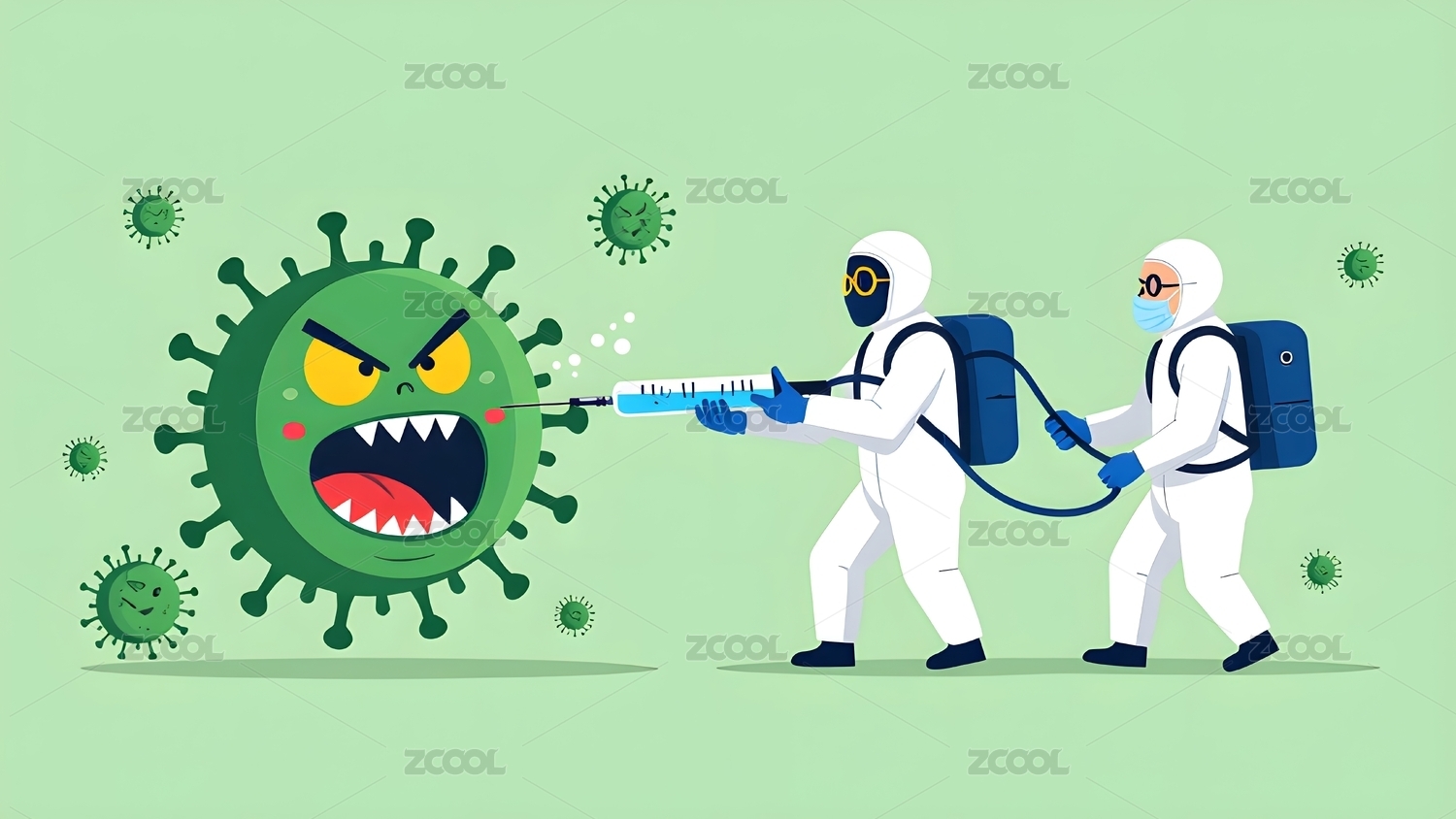 卡通,疫情,病毒,疫苗,防护服,医护人员,注射,消毒,幽默,健康