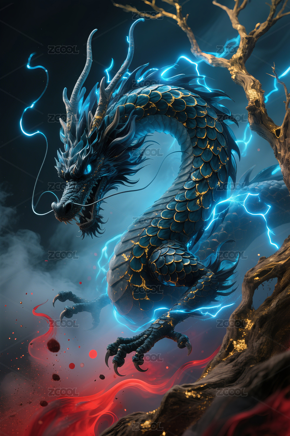 龙,神龙,黑龙,凝视,威压,龙鳞,月亮,龙角,龙须,山峰