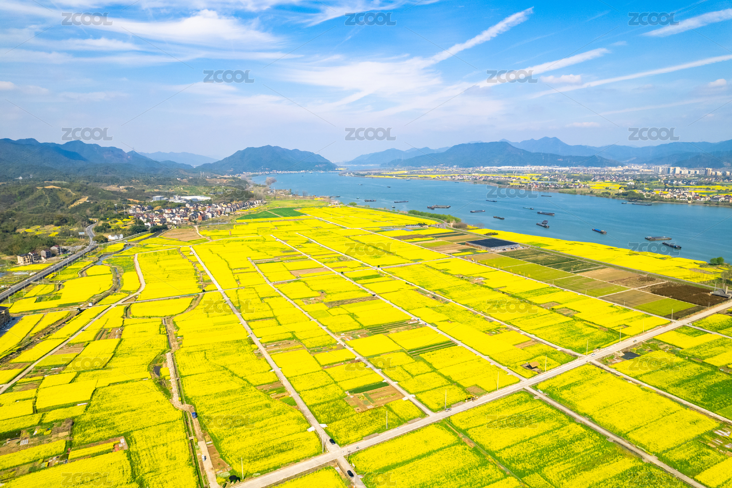 浙江杭州富春江畔万亩油菜花开