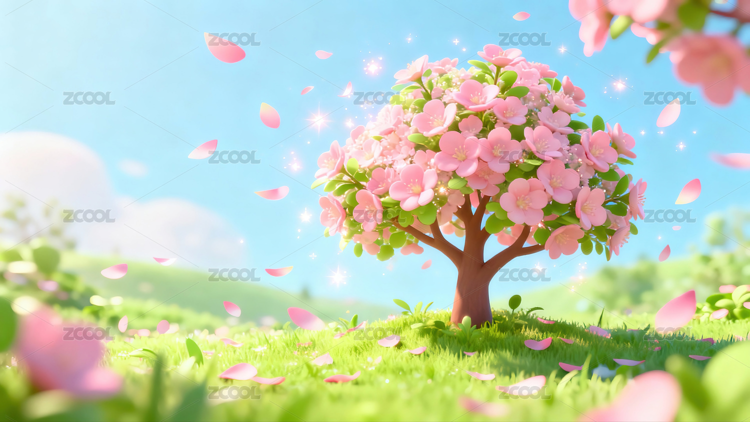 粉色樱花绿地明亮
