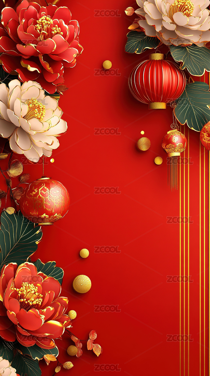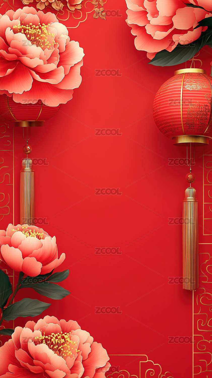 花朵,灯笼,新年,红色,喜庆,装饰,节日,祥和,背景,春节