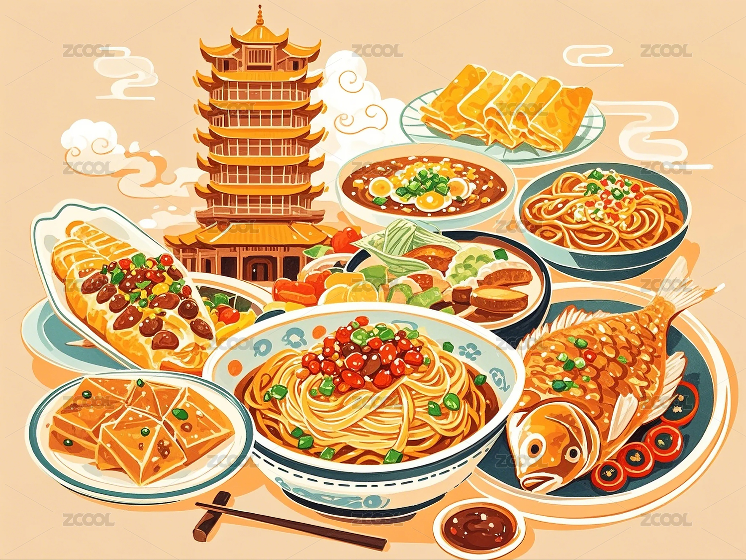 城市南昌传统特色美食南昌拌粉与建筑滕王阁