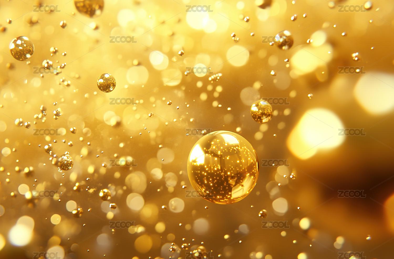 模糊渐变背景下液体中的抽象油滴,金色油滴