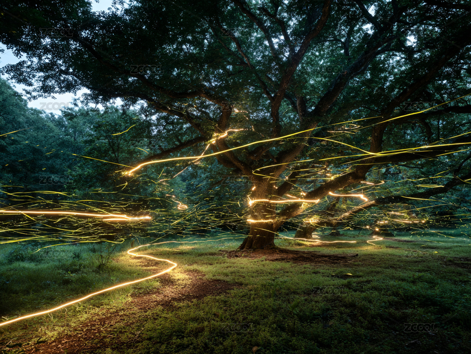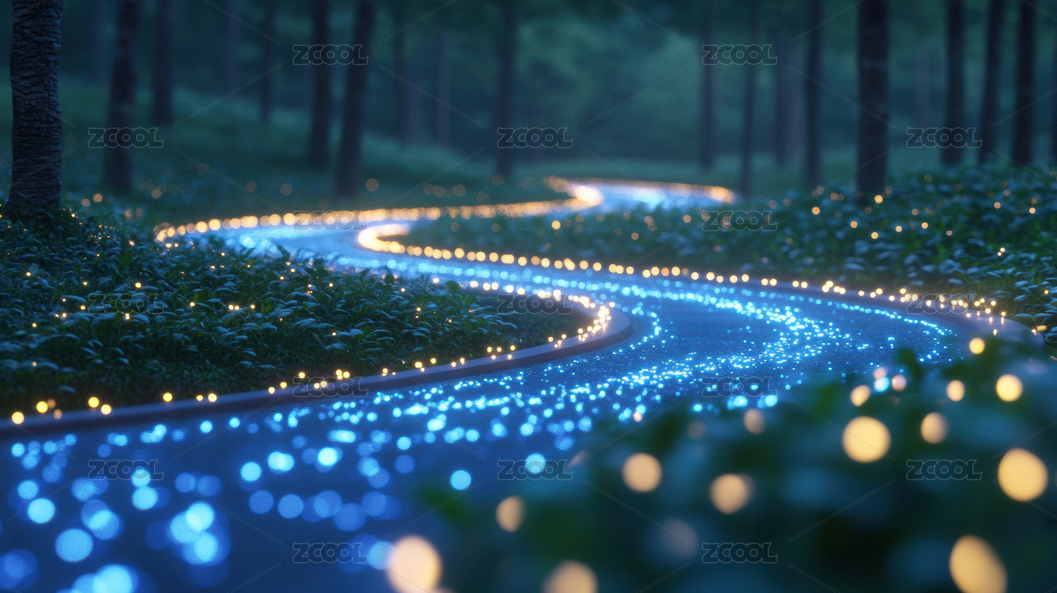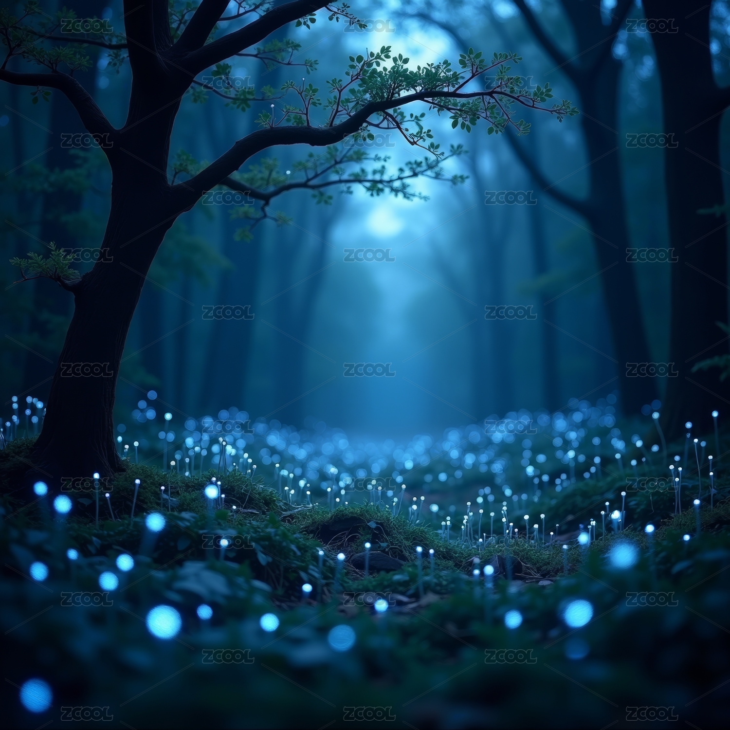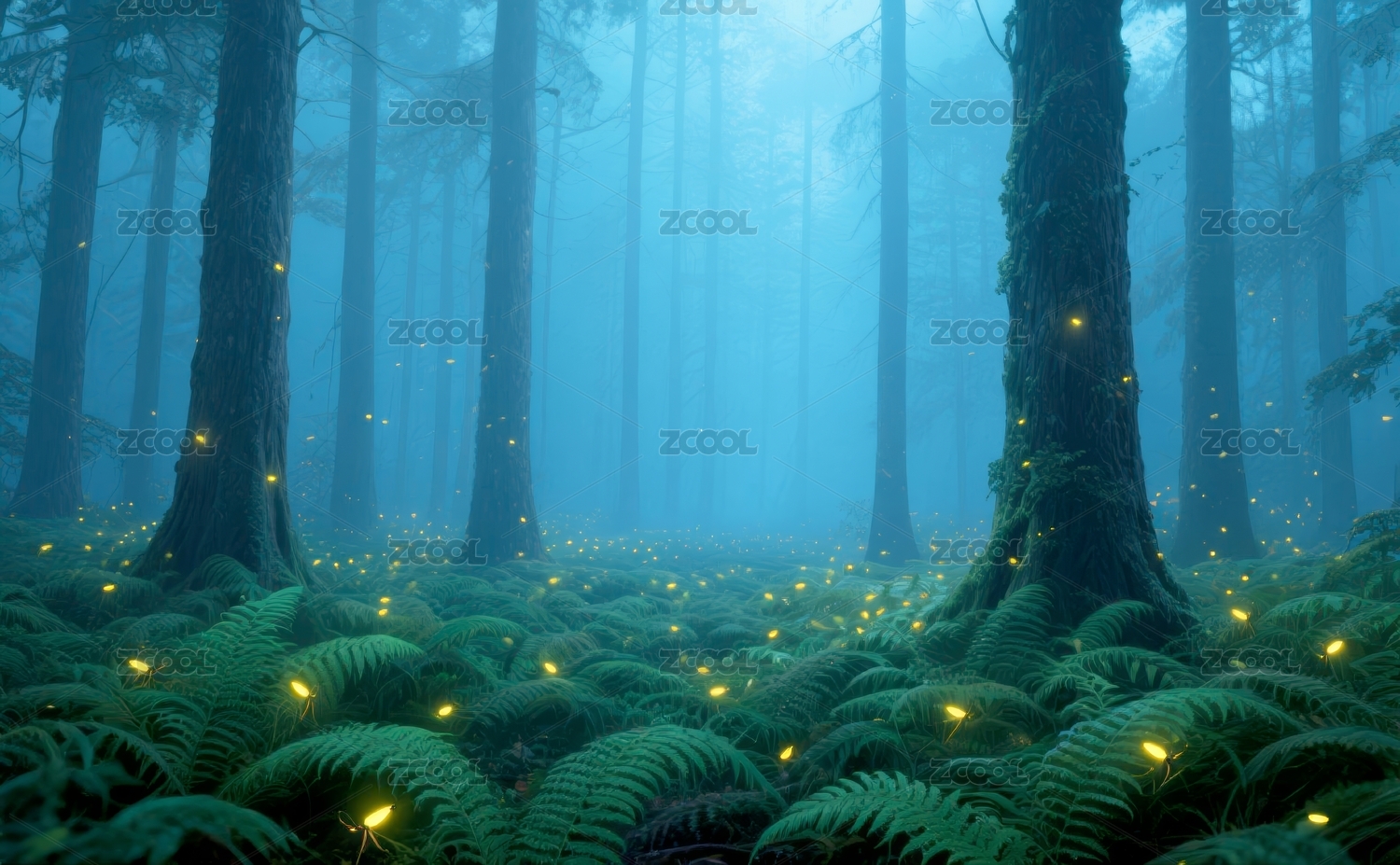 森林夜晚星空河流萤火虫神秘宁静唯美插画
