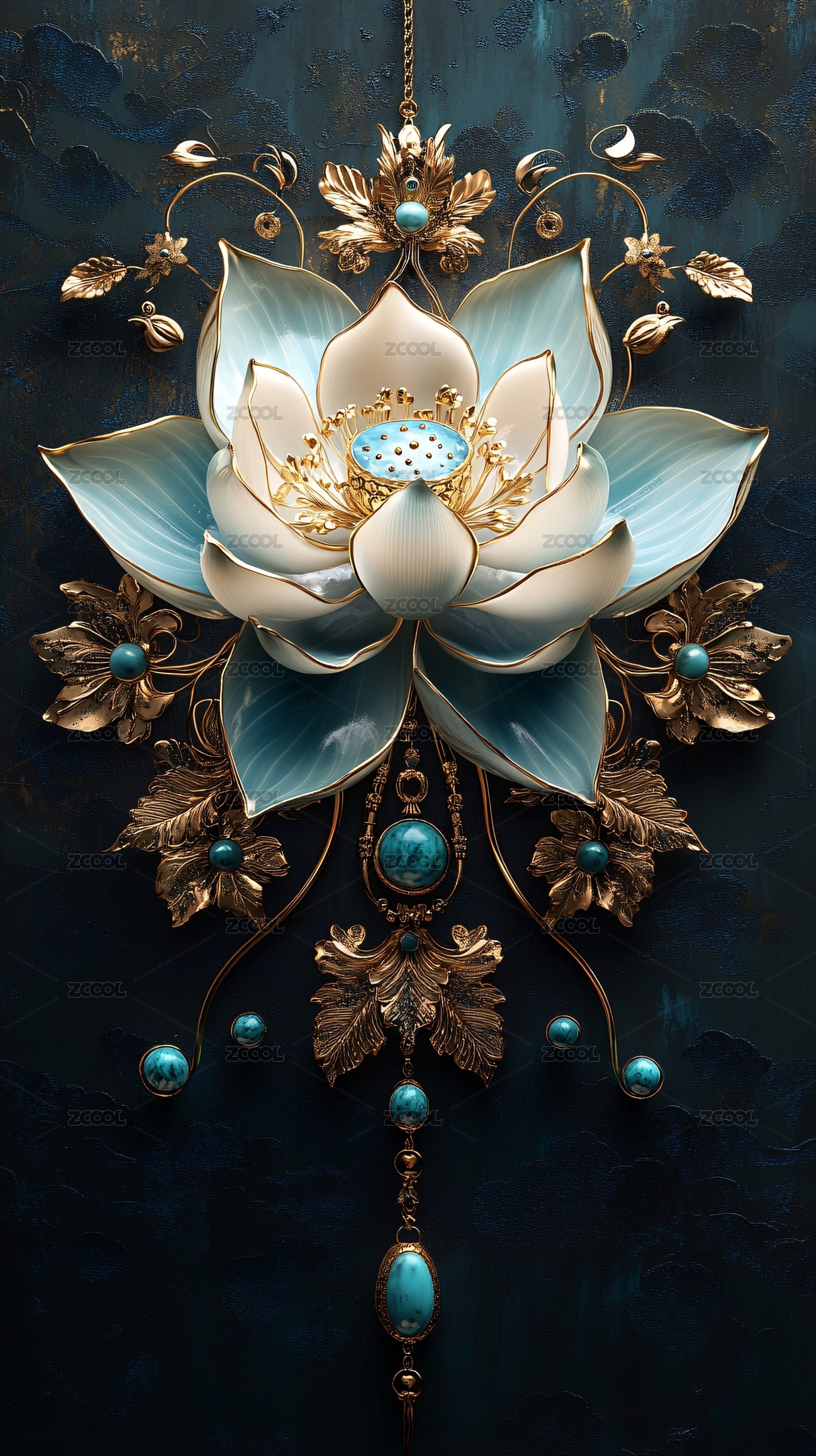 吊坠,绿玉,莲花,花瓣,花蕊,造型,古风,链条,珠子,流苏