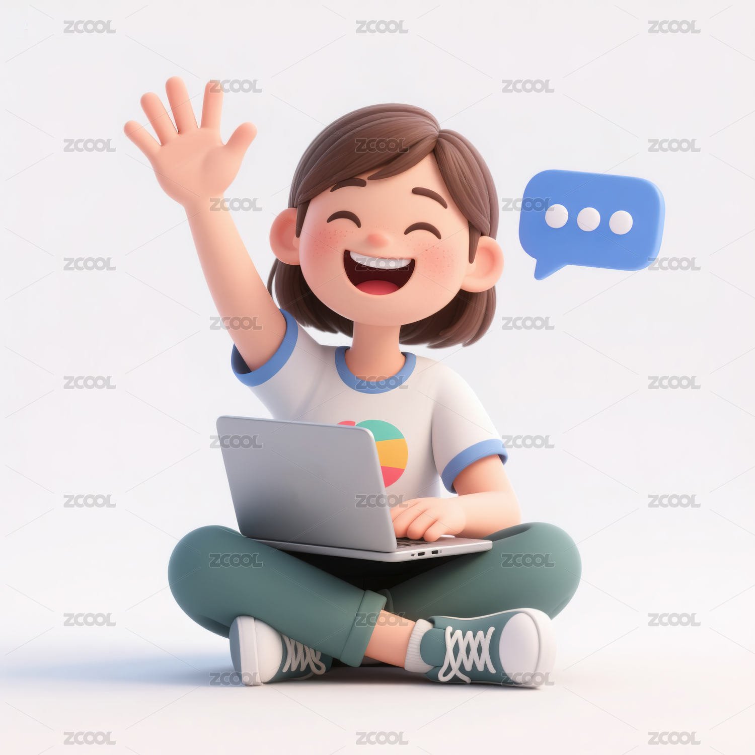 用电脑在线交流女孩3d插画
