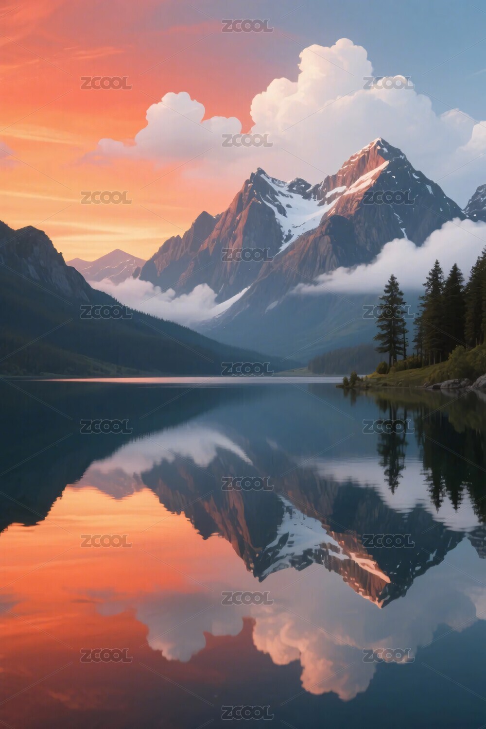 雪山,山谷,河流,山脉,宁静,壮丽,远山,高山,橙色,唯美