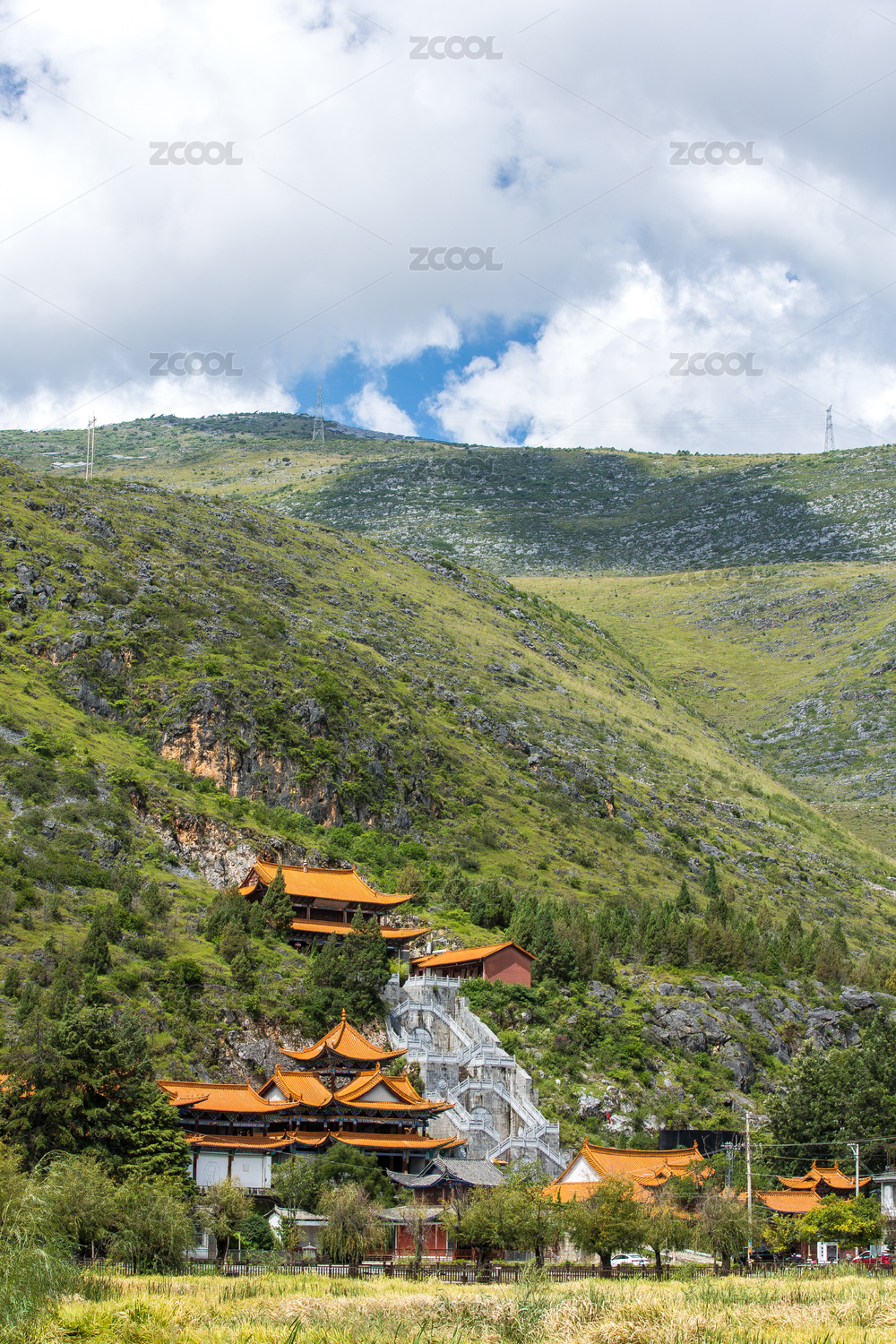 中国甘肃甘南合作米拉日巴佛阁藏族寺庙建筑