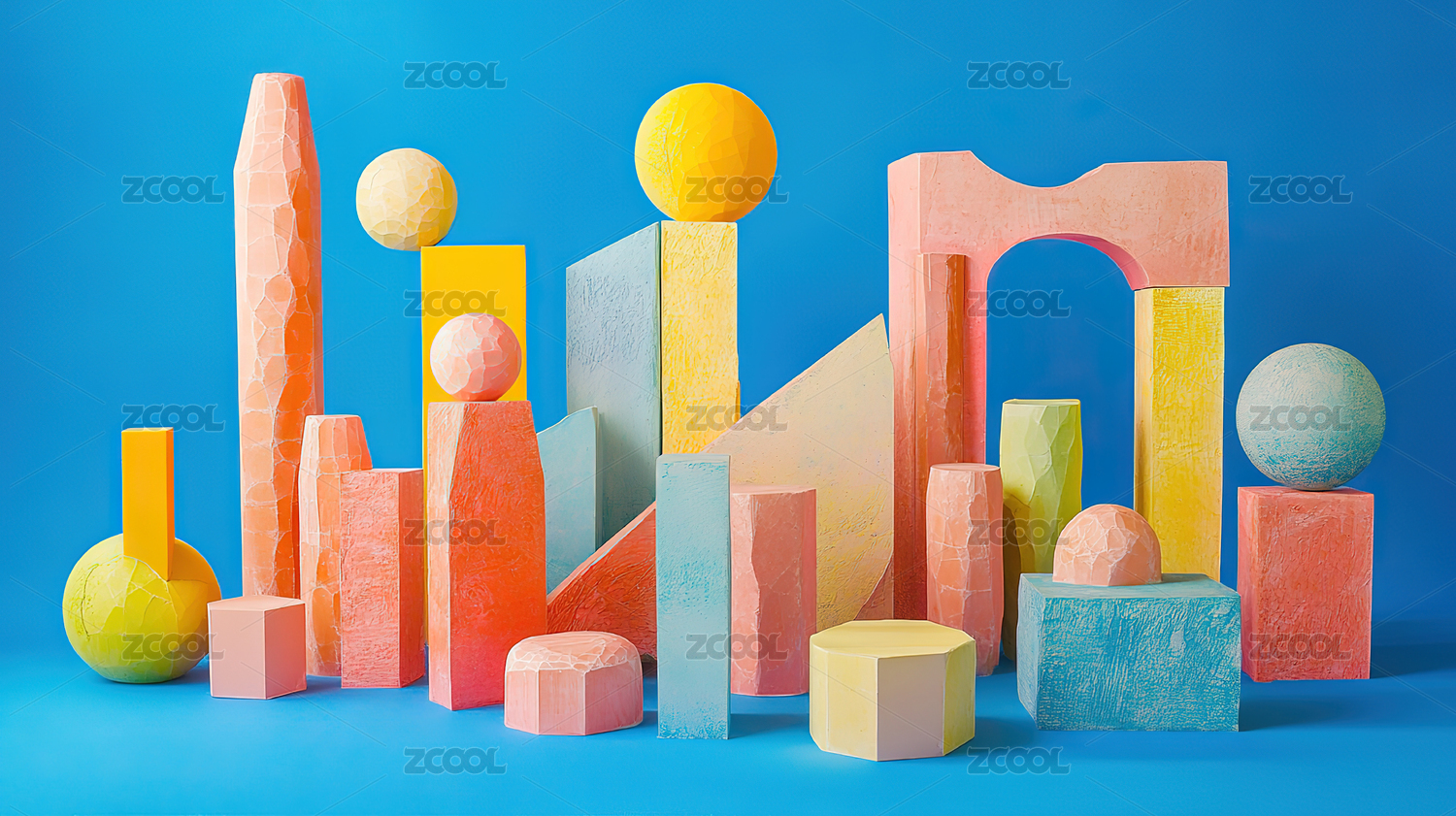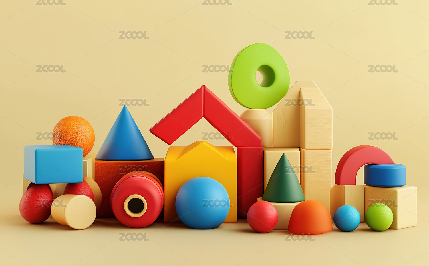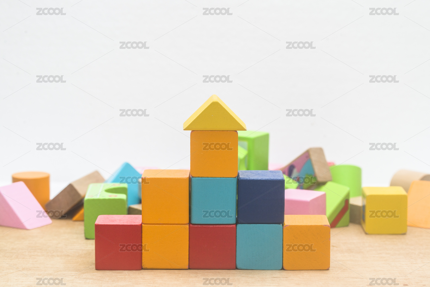 彩色积木堆叠的金字塔造型