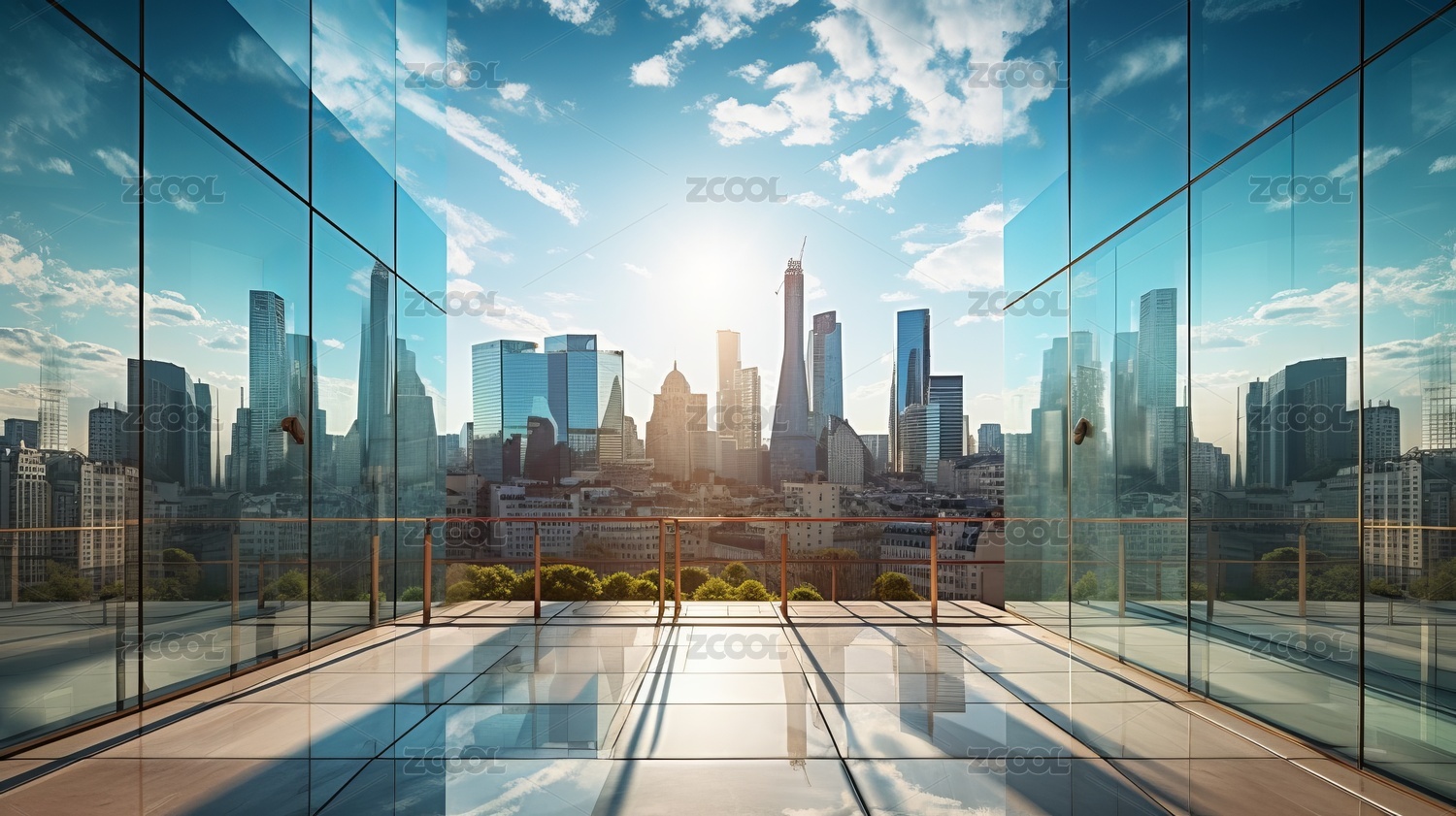 抽象插画风商业写字楼,城市天际线玻璃幕墙