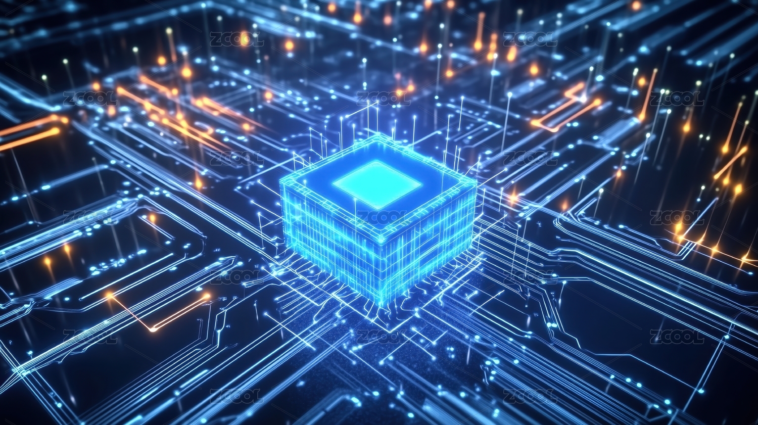 科技感,蓝色,未来,数字,科技,橙色,数据,网络,人工,智能