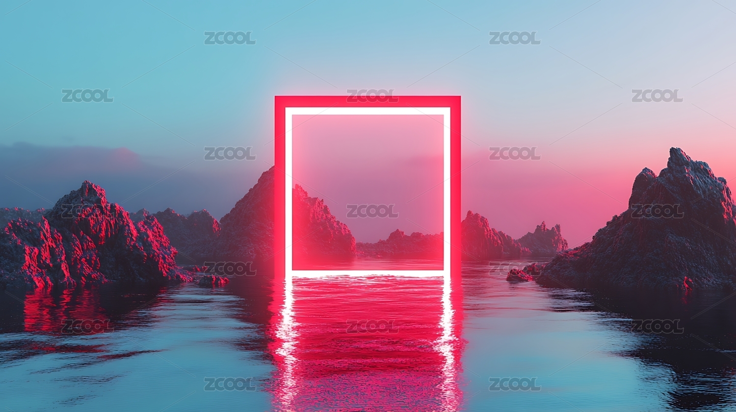 三维,立体,3D,场景,建筑,空间,光线,霓虹,海洋,天空