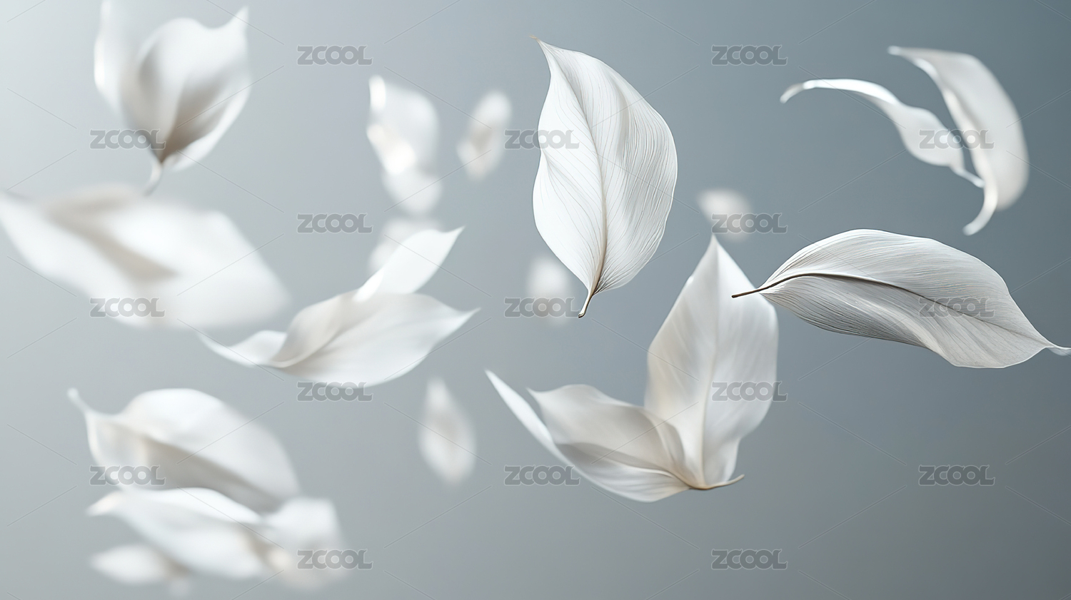 白色叶子漂浮在渐变灰色背景