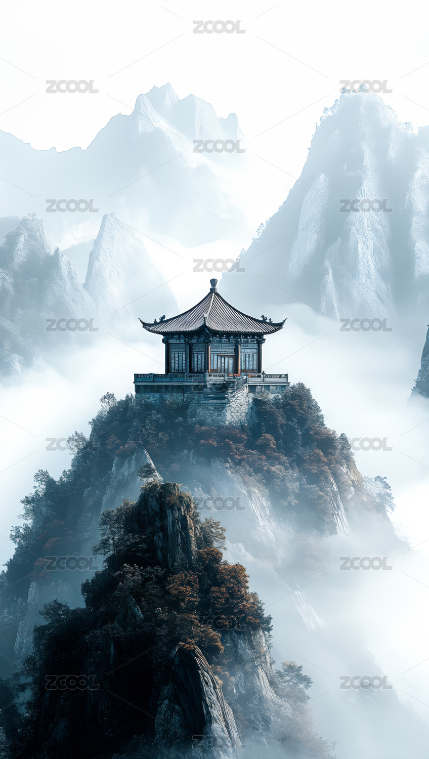 中国风山顶亭台楼阁
