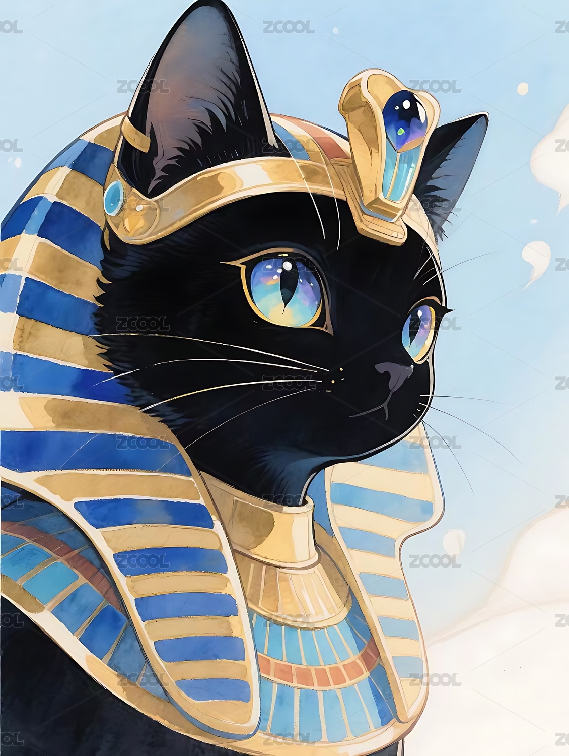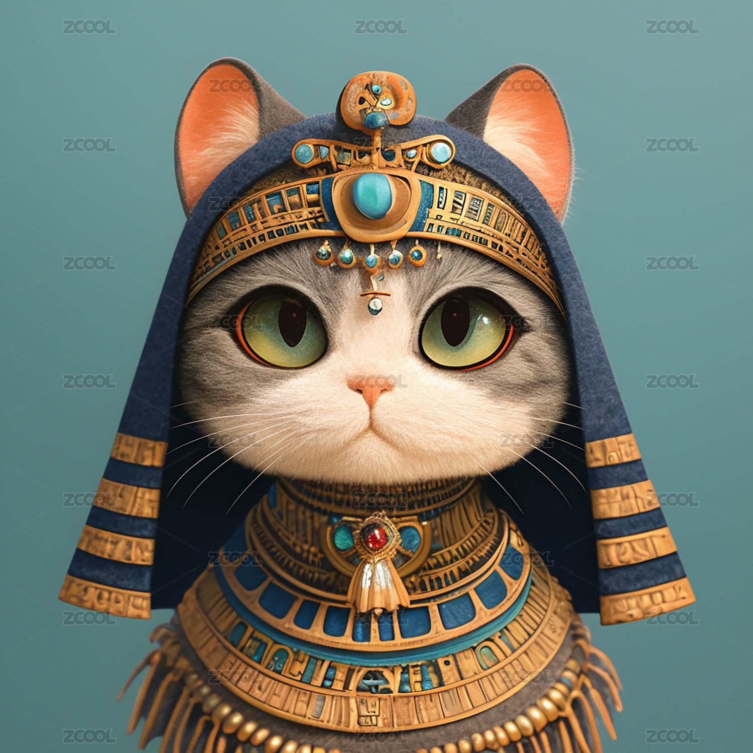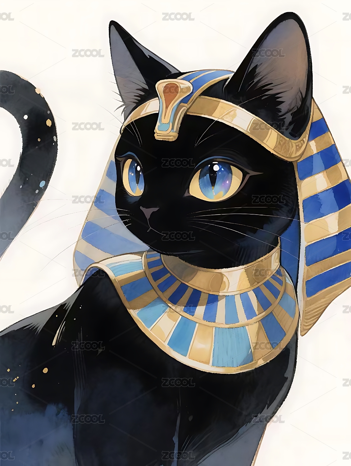 古埃及,猫,神,装饰,头饰,项链,卡通,艺术