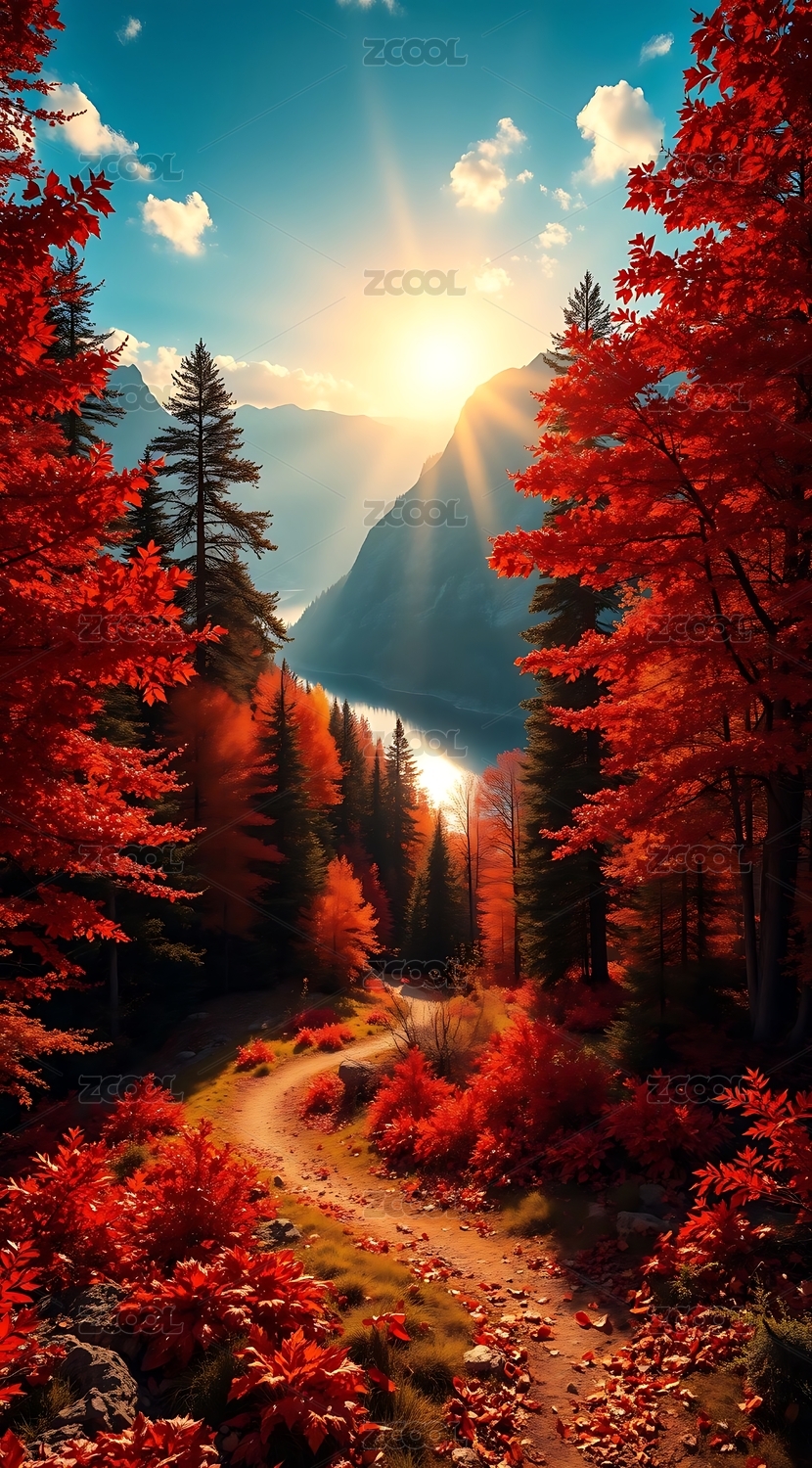 秋天,山脉,小路,枫叶,树木,风景,自然,落叶