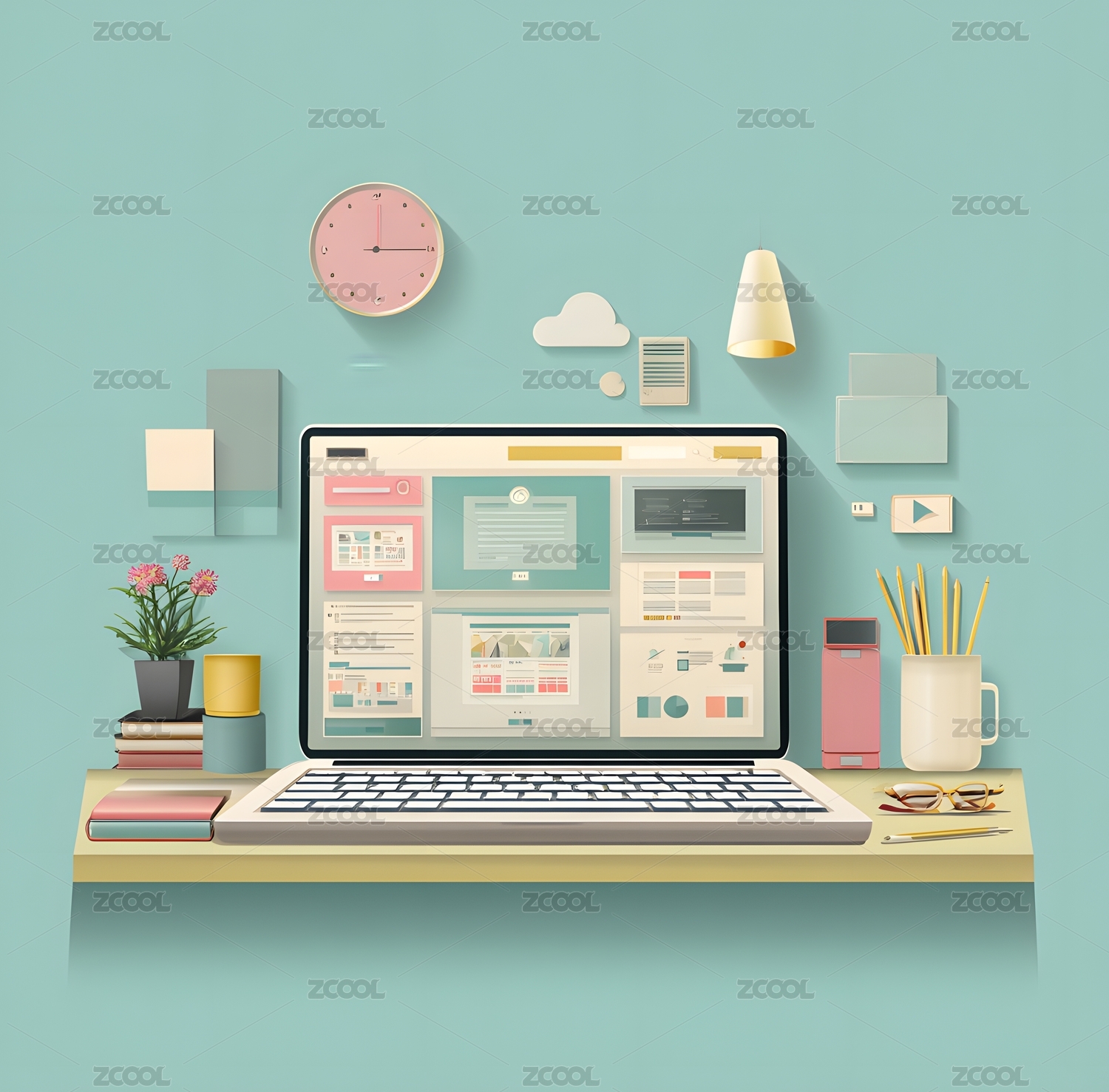 简约办公电脑桌面设计 创意清新风格