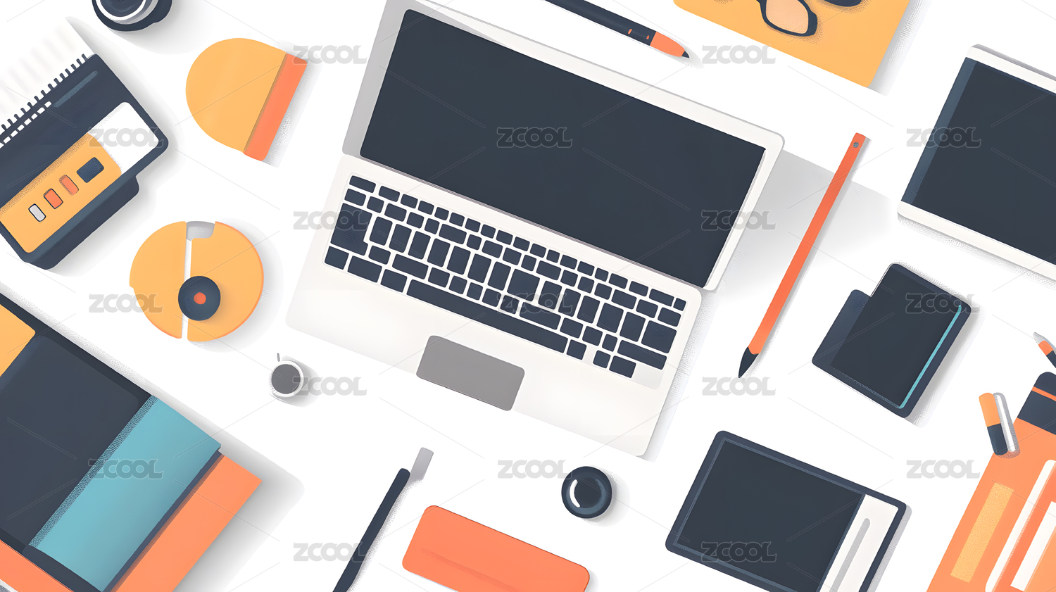 卡通简约办公桌场景