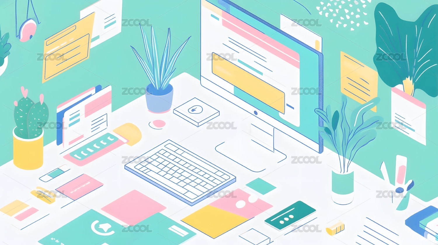 电脑办公插画