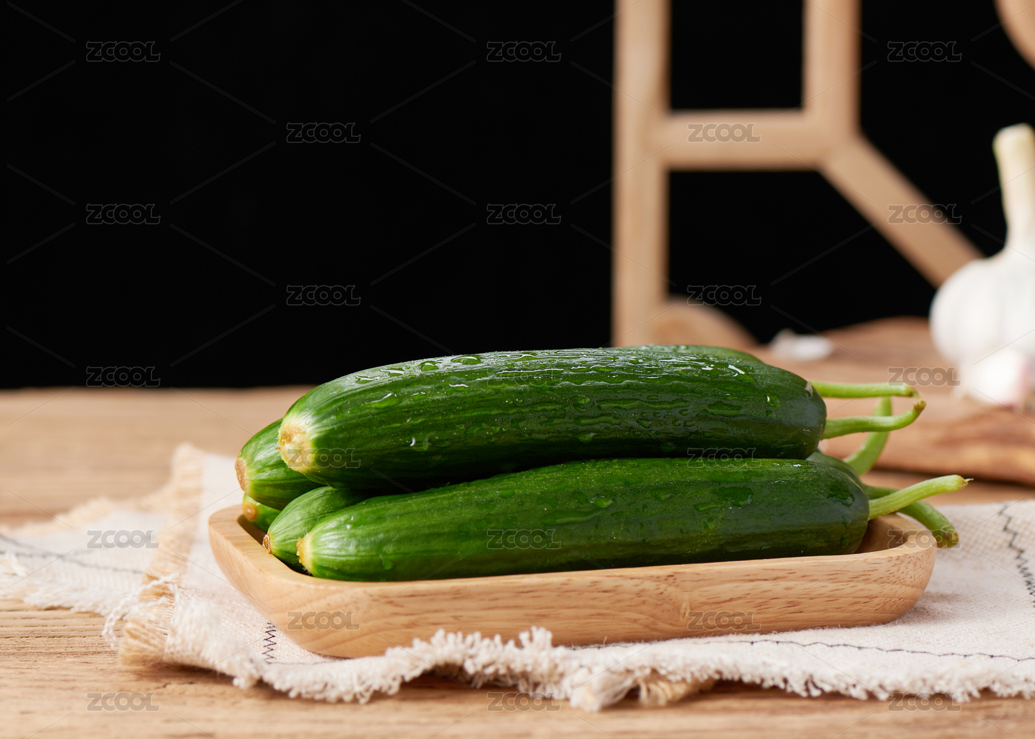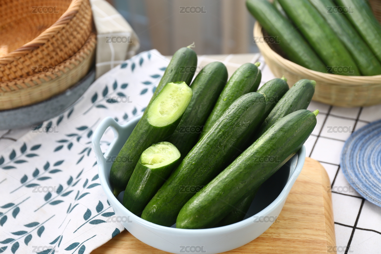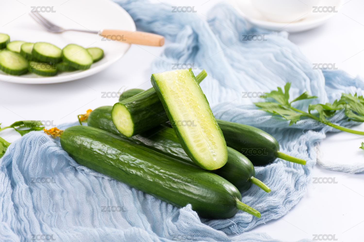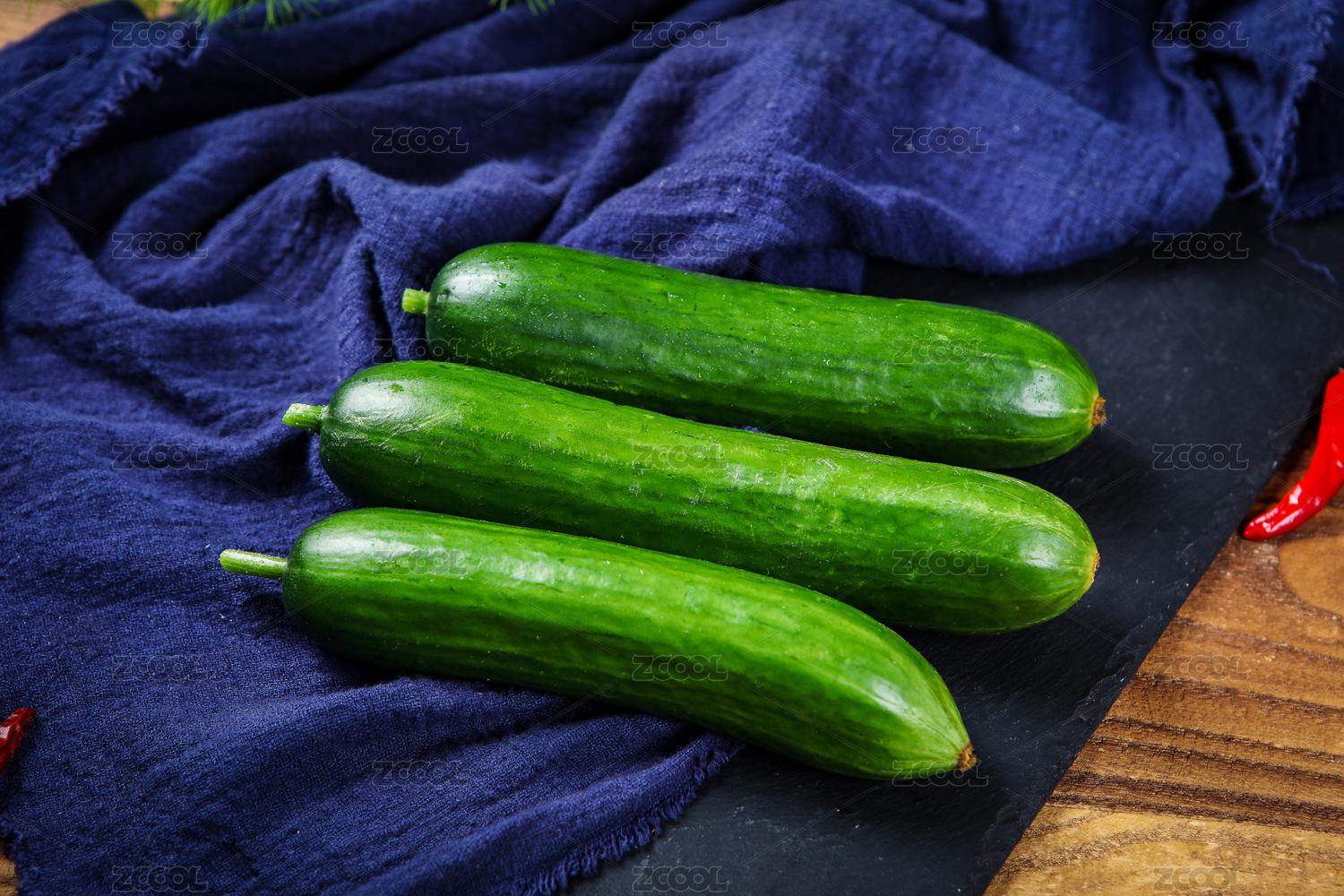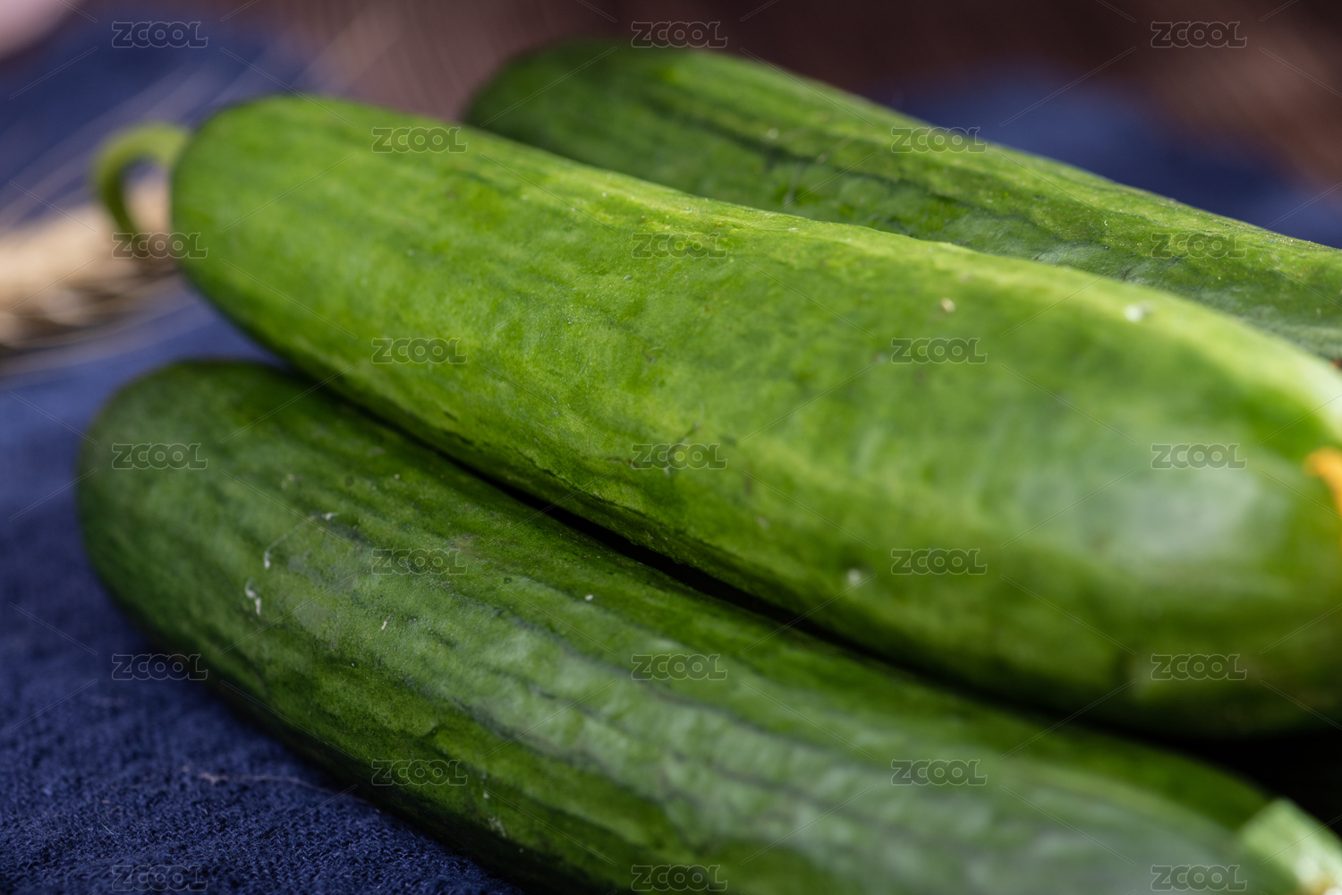 棉布上新鲜的黄瓜