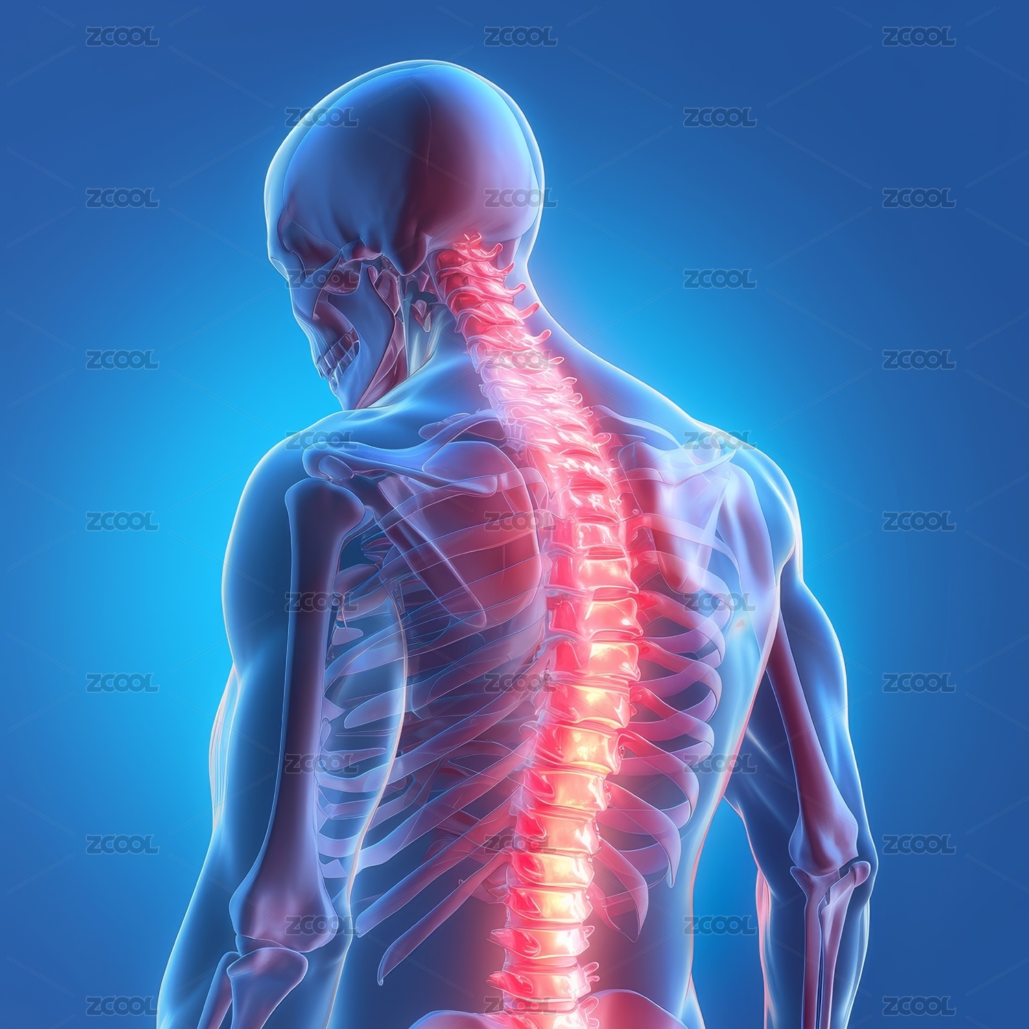 人体骨骼结构艺术渲染,脊柱护理康复概念