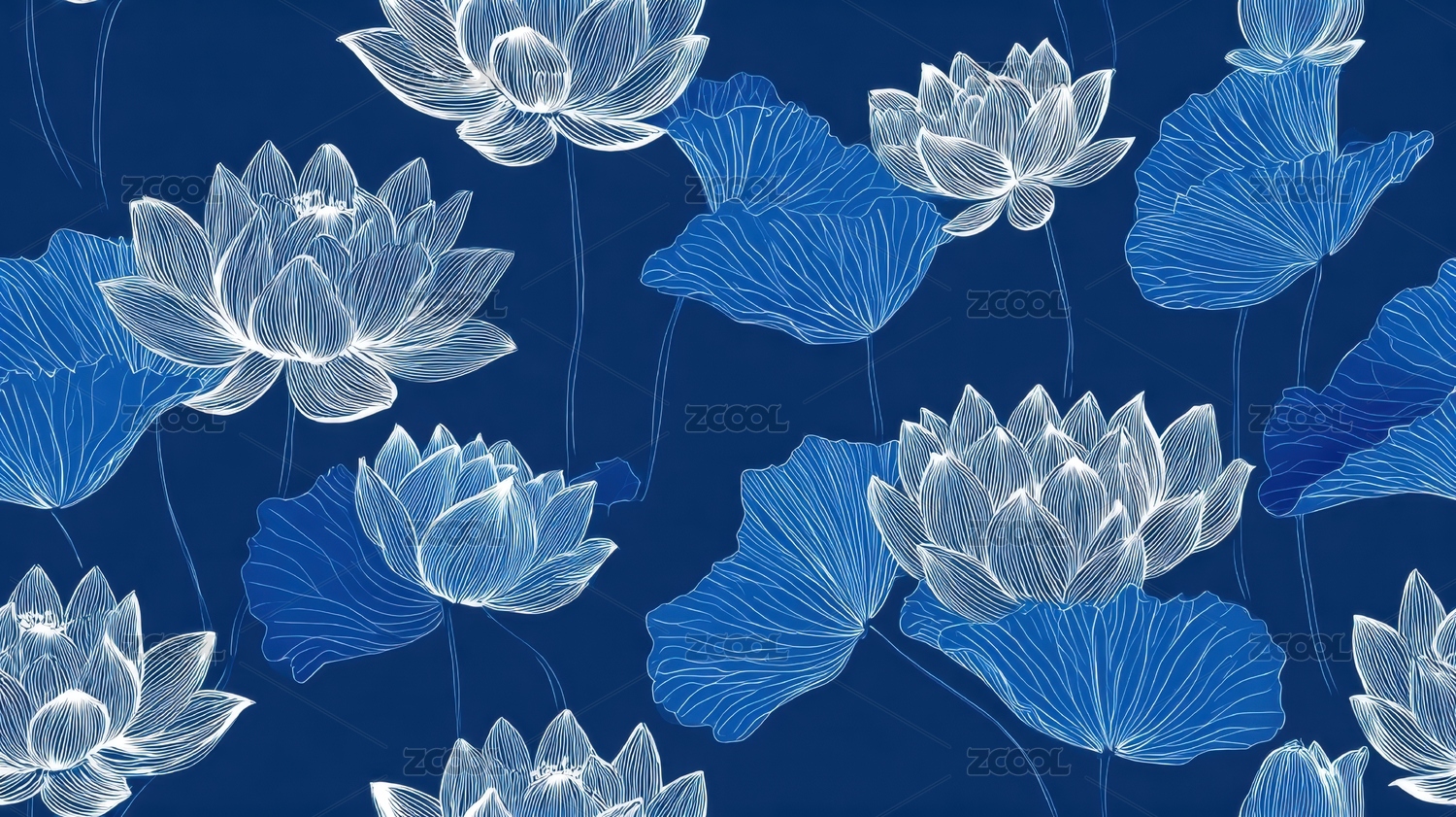 氛围,纹理,美感,蓝白,荷花,荷叶,花苞,花卉,中式,古风