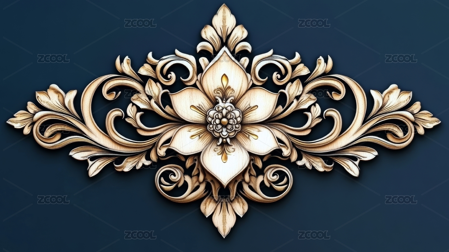 复古抽象纹章纹样设计鸢尾花百合花纹饰