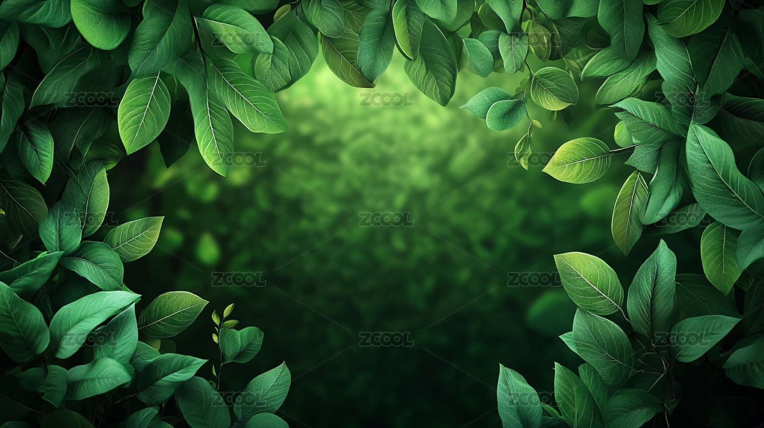 夏天的树叶和画面中心留白的绿色背景插画
