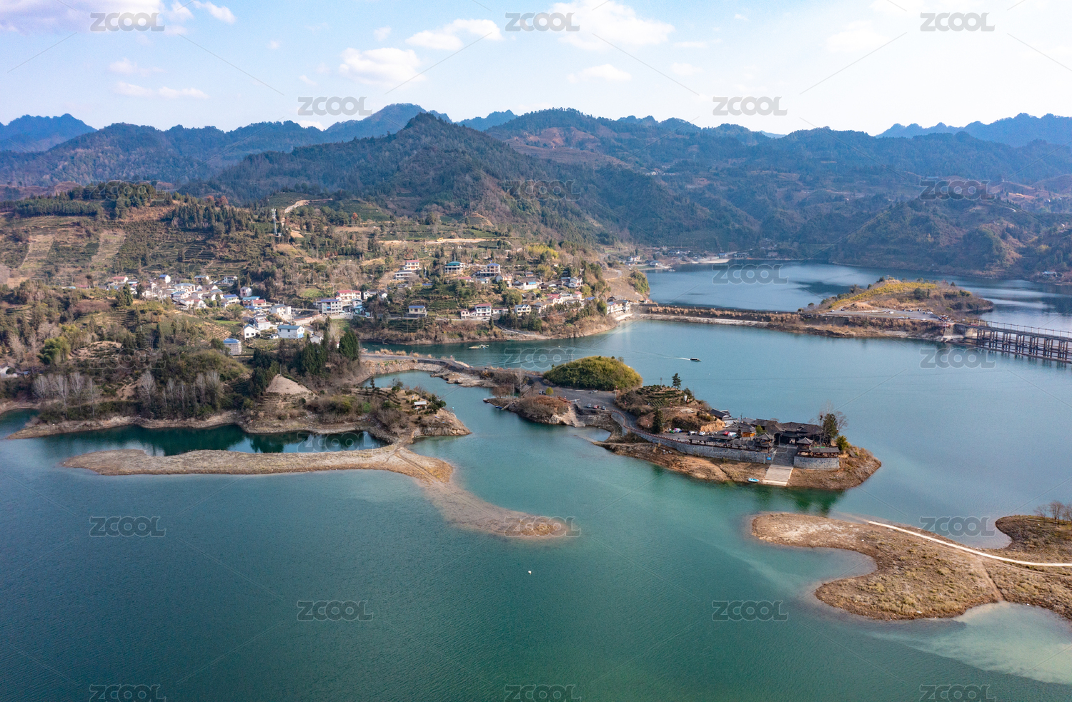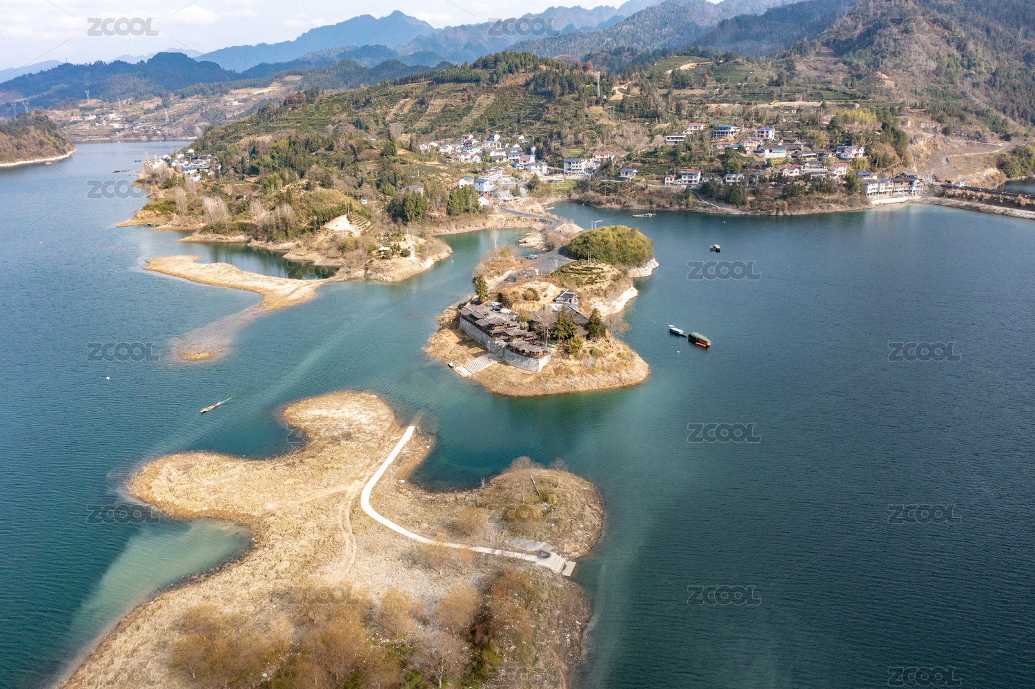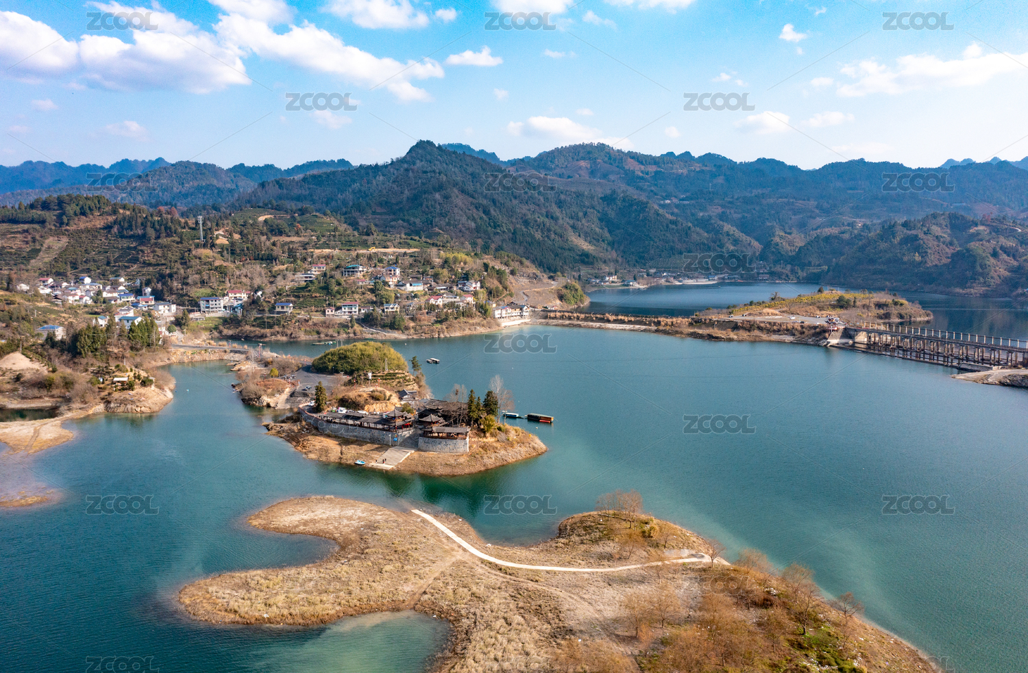 航拍,栖凤湖,酉水,湖南,湘西,古丈县,湖,岛,白天,渔船