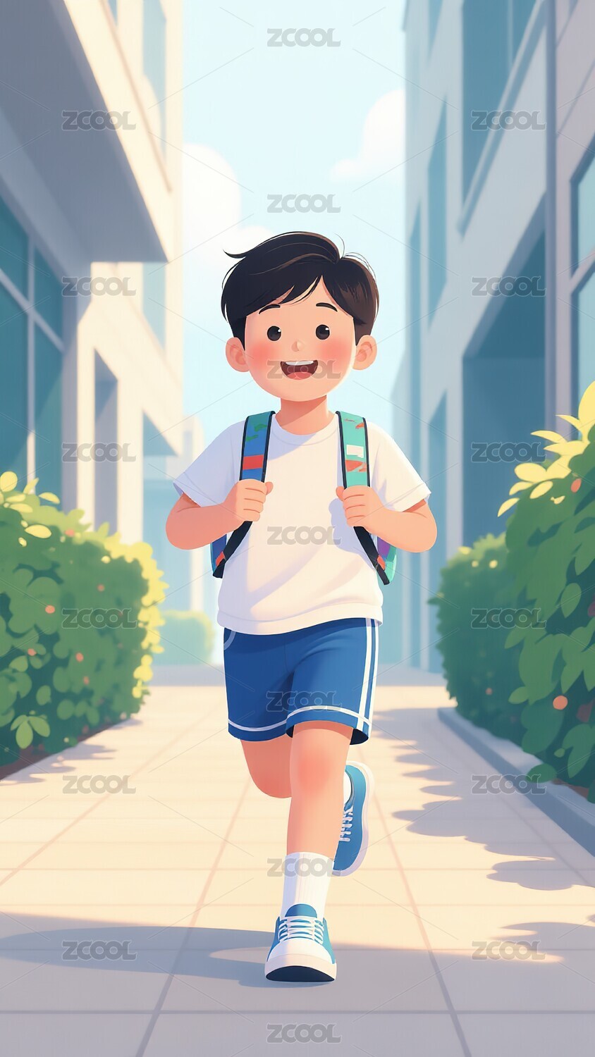 卡通男孩上学场景