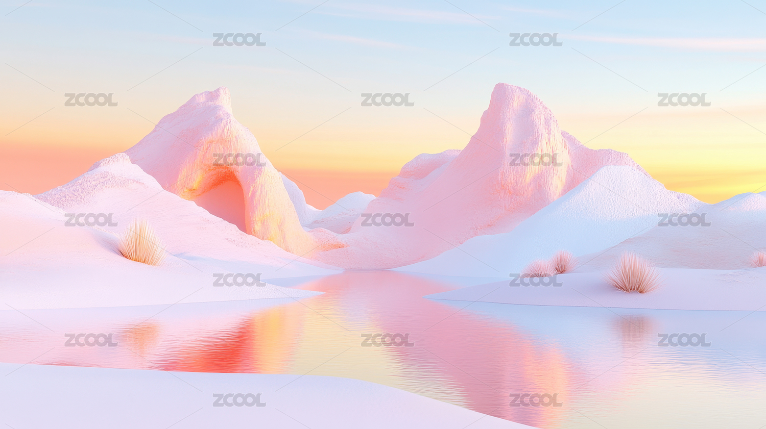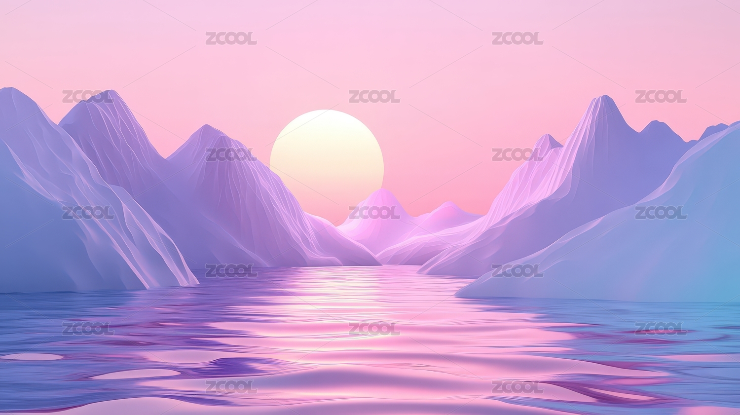 梦幻粉色山脉与湖泊