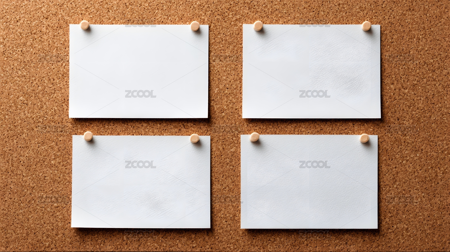 软木板上四张空白便签纸