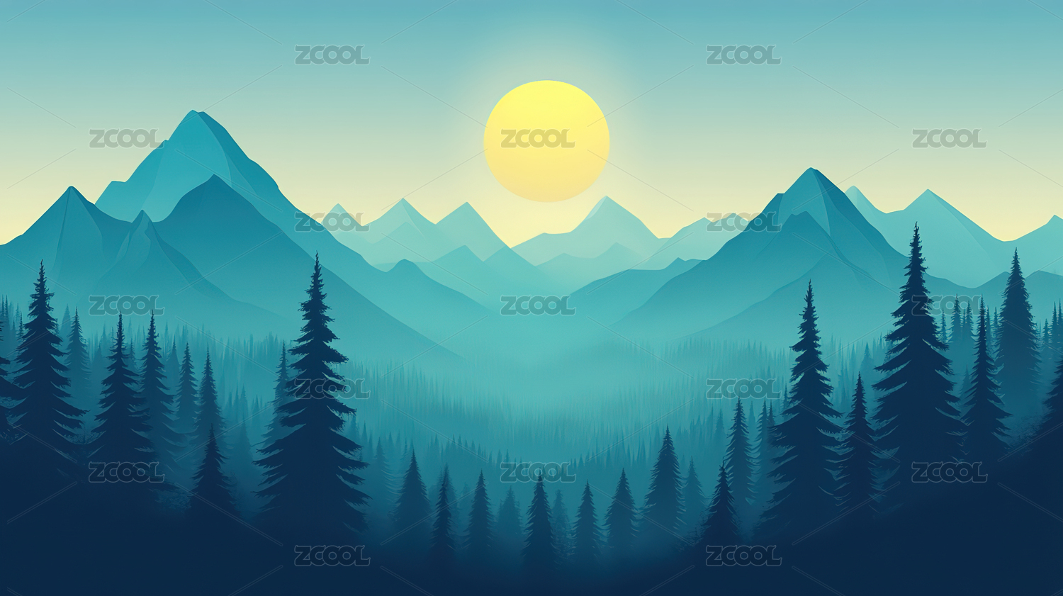 黄昏,太阳,宁静,自然,松树,雾气,森林,山脉,蓝天,清新