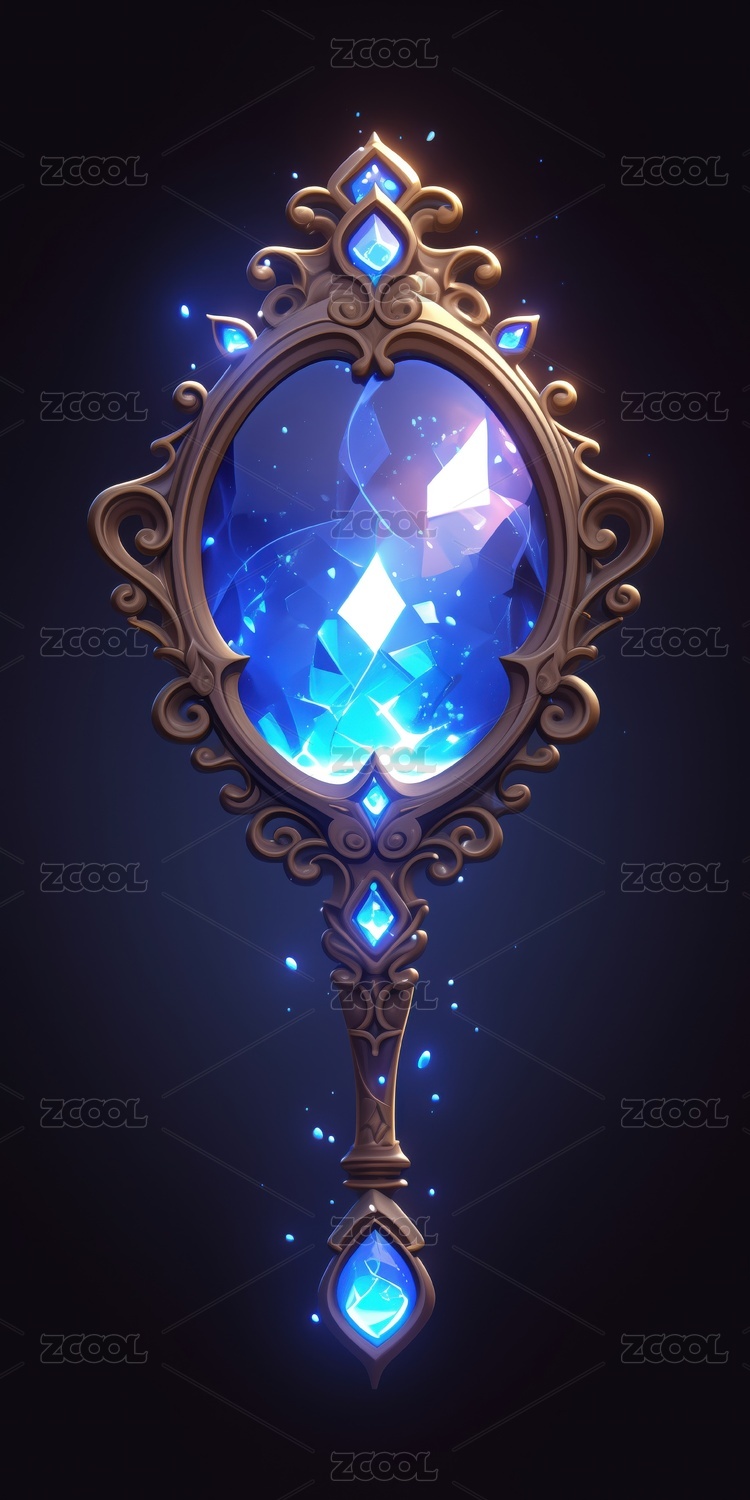玄幻原画黑底奇幻魔幻宝石镜子3D卡通插画
