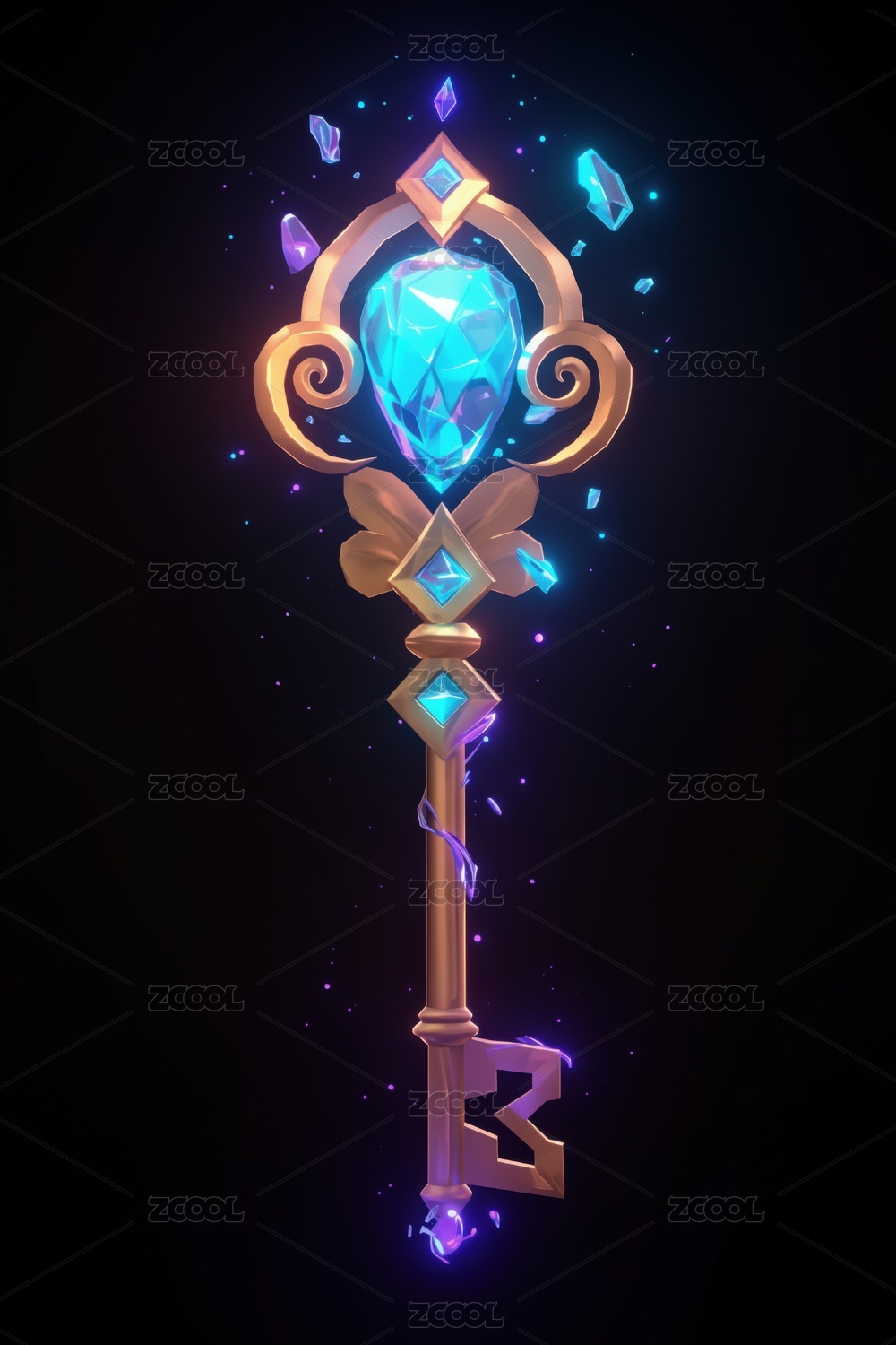 原画黑底极简奇幻魔幻宝石钥匙3D卡通插画