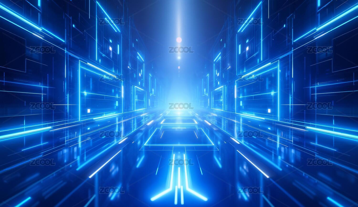蓝色科技隧道的未来感场景