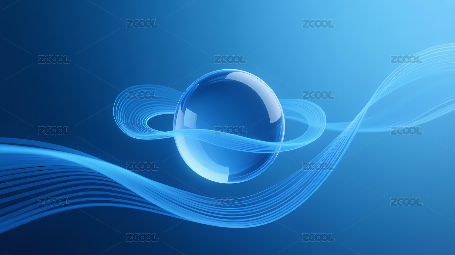 蓝色球体与流动波浪